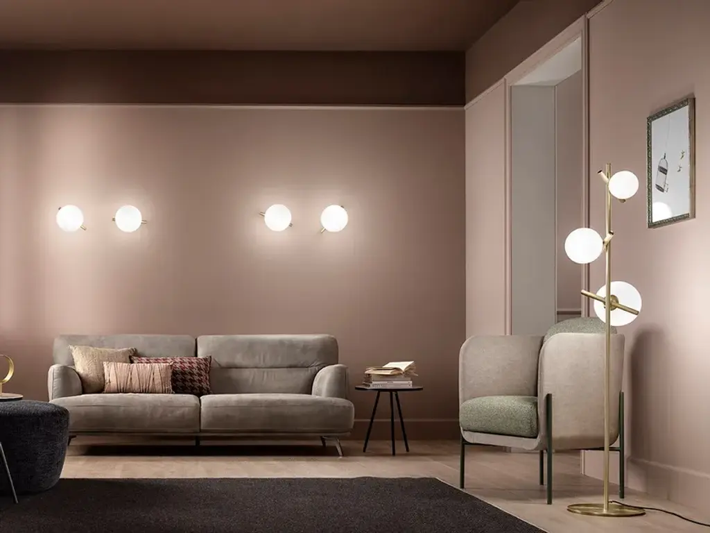 Posy A1 is a wall lamp with galvanized metal structure. Opal white Murano triplex glass diffuser.Light source:1XE14X10WCEETLCCC LEDCB SCHEME LED Balance and simplicity are the keywords of Posy. The sphere and stem interact with each other to achieve a natural balance that amazes for its natural beauty.