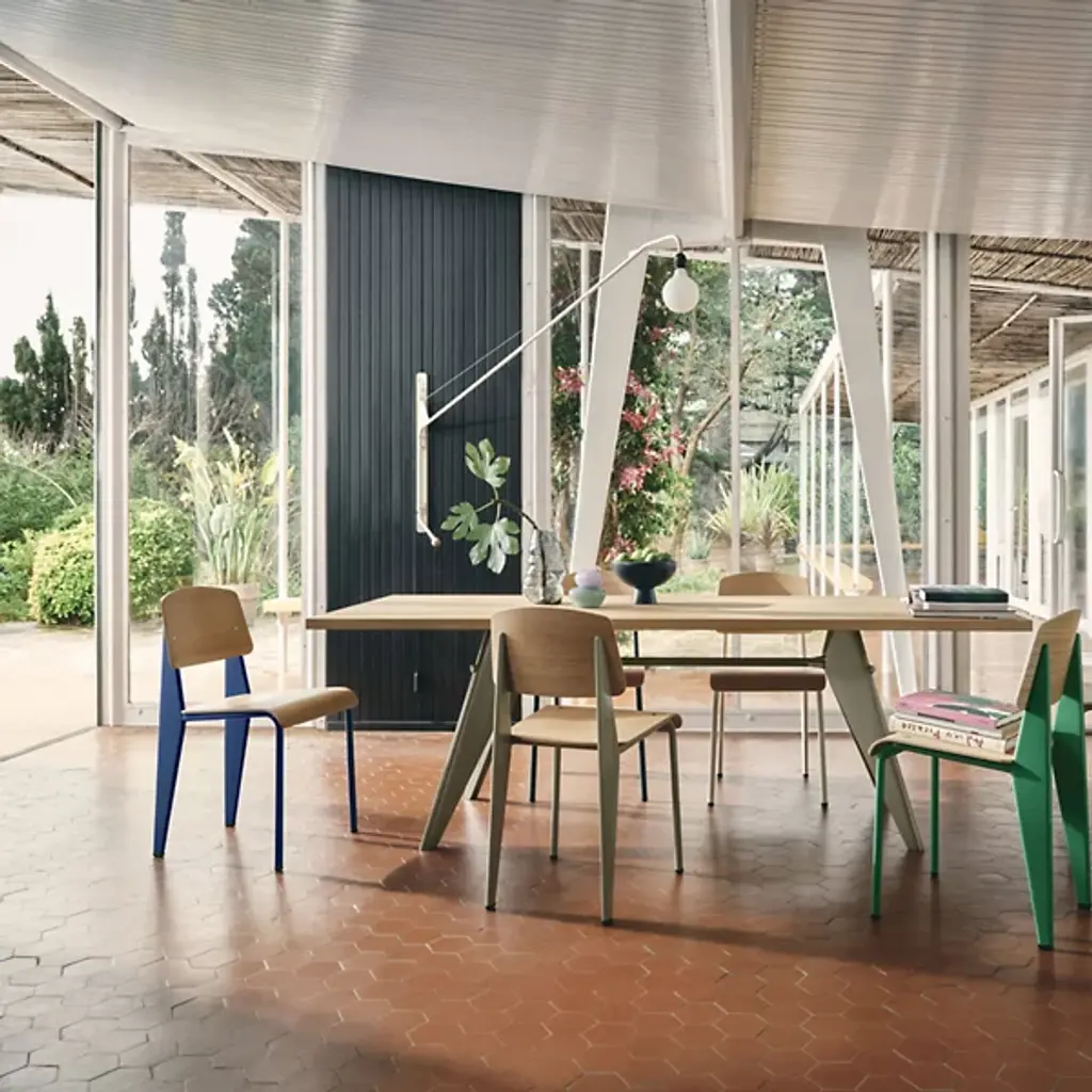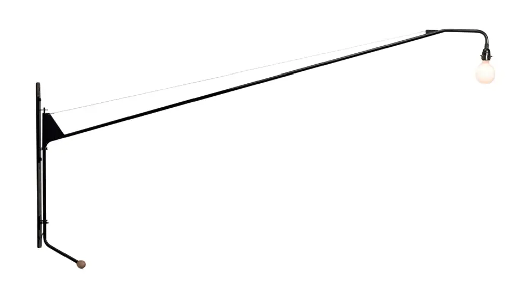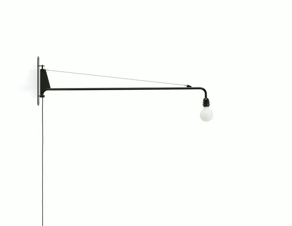 Give your living space a streamlined appearance with the Potence LED Wall Sconce by Vitra. This lamp was originally by designed by Jean Prouve in 1947. A slim backplate secures to your wall, providing the foundation for an ultra-slender frame of metal. The arm of this wall sconce bends acutely at the end to support an integrated LED. This led is neatly housed inside of a glass shade. Your wall sconce is composed of powder-coated tubular steel for durability.