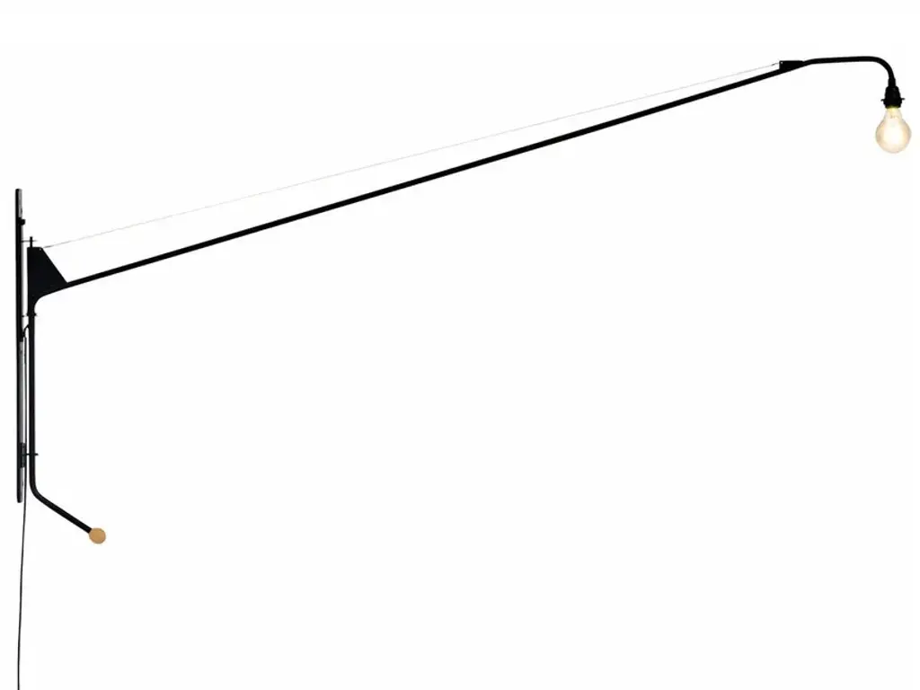 Give your living space a streamlined appearance with the Potence LED Wall Sconce by Vitra. This lamp was originally by designed by Jean Prouve in 1947. A slim backplate secures to your wall, providing the foundation for an ultra-slender frame of metal. The arm of this wall sconce bends acutely at the end to support an integrated LED. This led is neatly housed inside of a glass shade. Your wall sconce is composed of powder-coated tubular steel for durability.