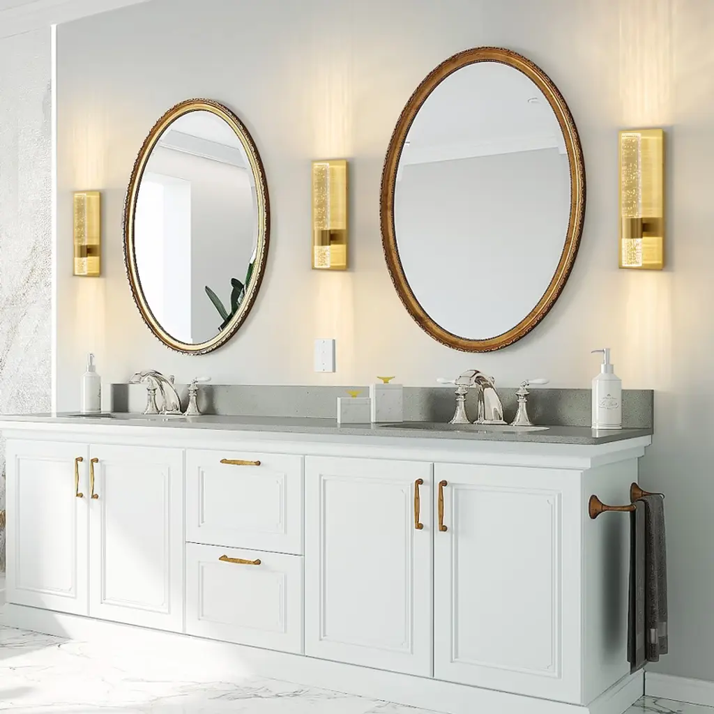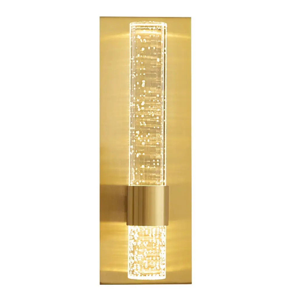 Powlig 13.7" 1-light Gold Modern Dimmable Wall Sconces With Crystal Bubble Tube -Full Backplate Design