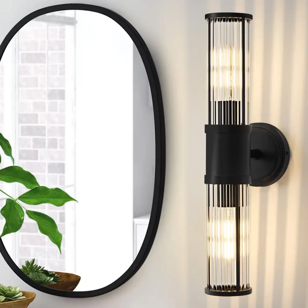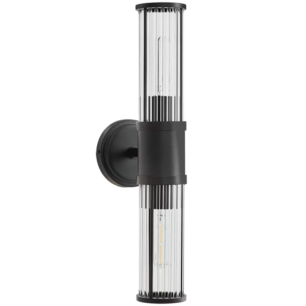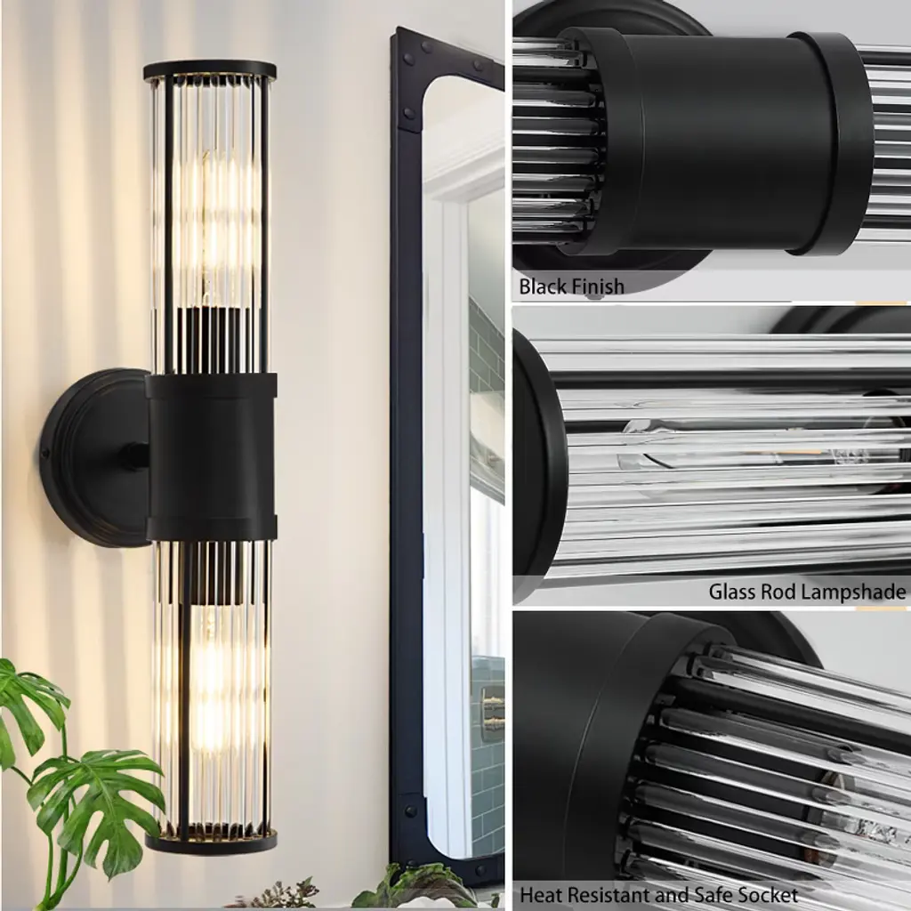 Powlig 19.92" Black Modern Wall Sconce - 2-light Dimmable Hardwired Fixture With Glass Rod Shade For Bedroom, Entryway, Or Bathroom