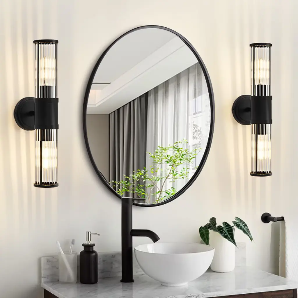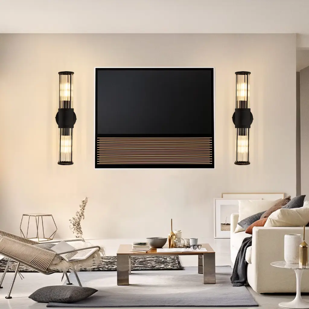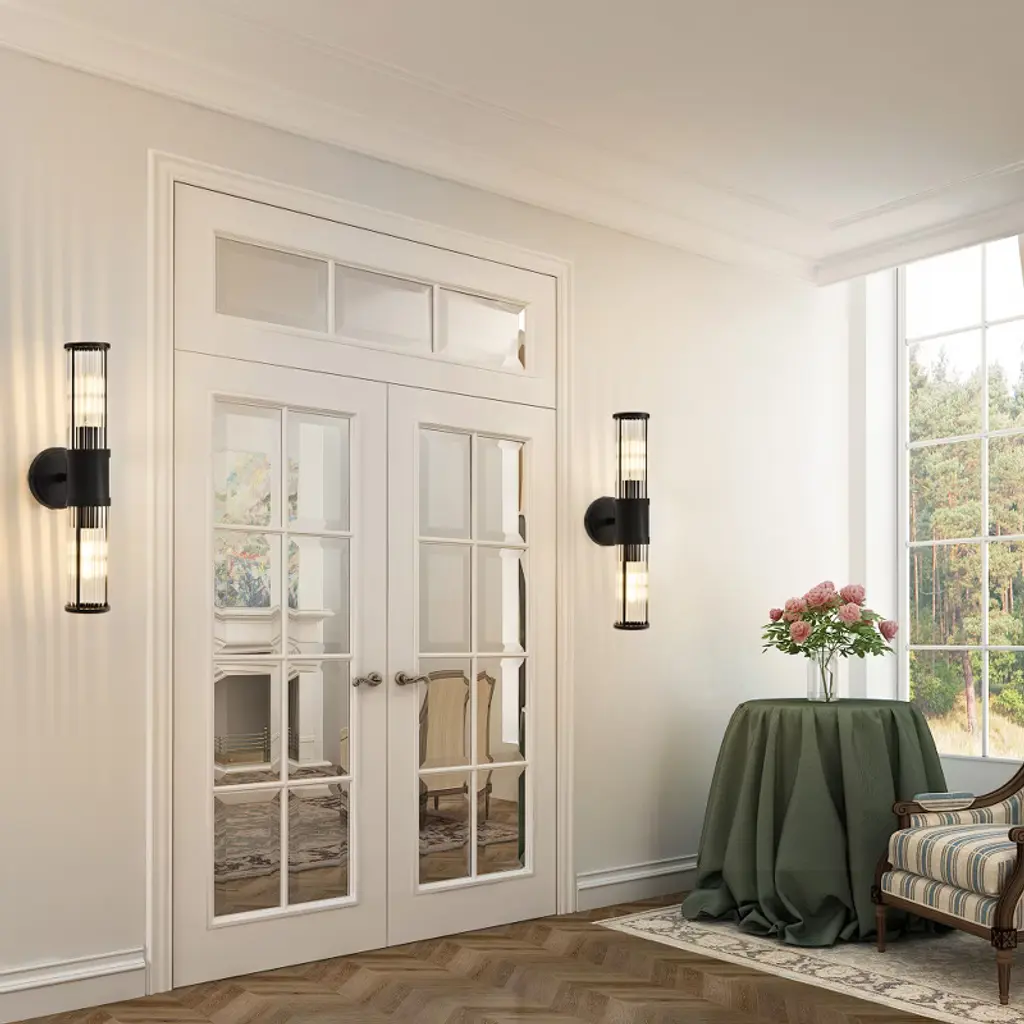 Powlig 19.92" Black Modern Wall Sconce - 2-light Dimmable Hardwired Fixture With Glass Rod Shade For Bedroom, Entryway, Or Bathroom