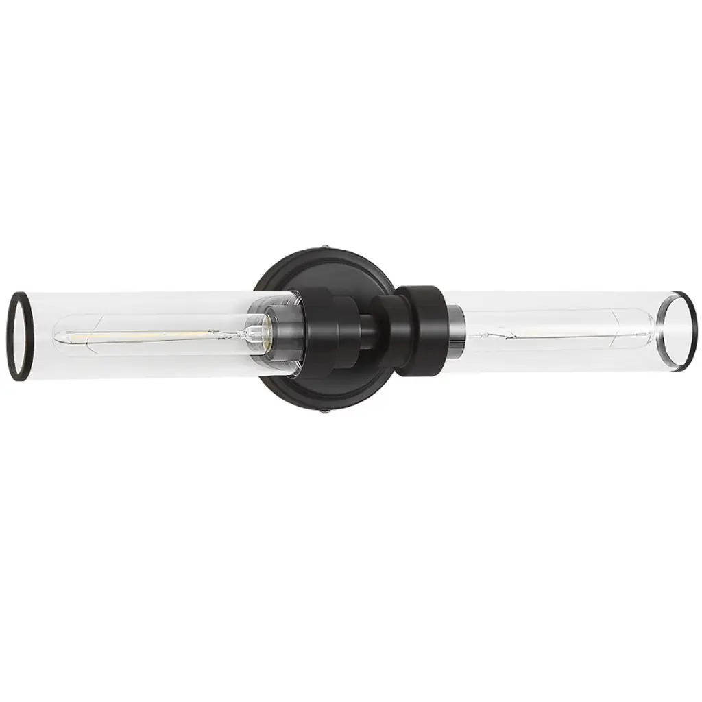 Powlig 20.3" Black Modern Wall Sconce - 2-light Dimmable Fixture With Transparent Glass Shade, Hardwired For Entryway/bedroom