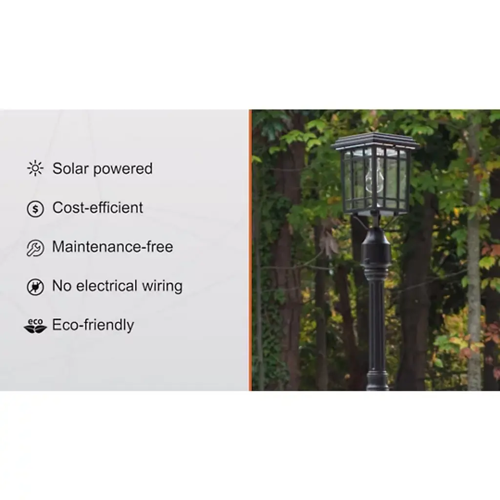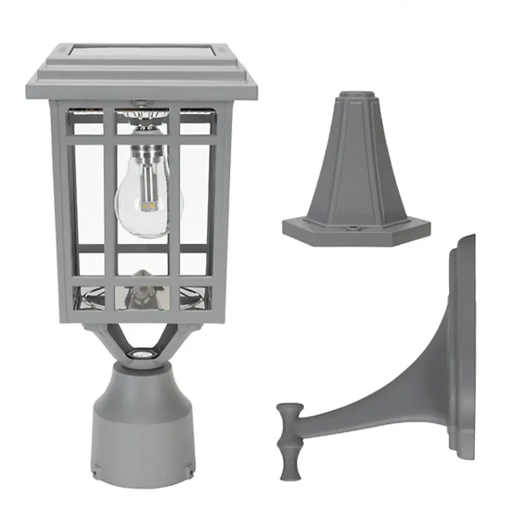 The Prairie Bulb Solar Outdoor LED Wall Sconce/Post Light from Gama Sonic presents a rustic country-inspired design and offers versatile mounting options, including post mount, pier/flat mount, and wall mount, catering to your outdoor solar lighting needs. Easy to install and stylish, this solar-powered light suits various outdoor spaces. Crafted from weather-resistant, rust-proof cast aluminum with a sleek powder-coated finish and flat grind glass panes, it features advanced solar LED bulb technology, providing comprehensive 360-degree illumination.