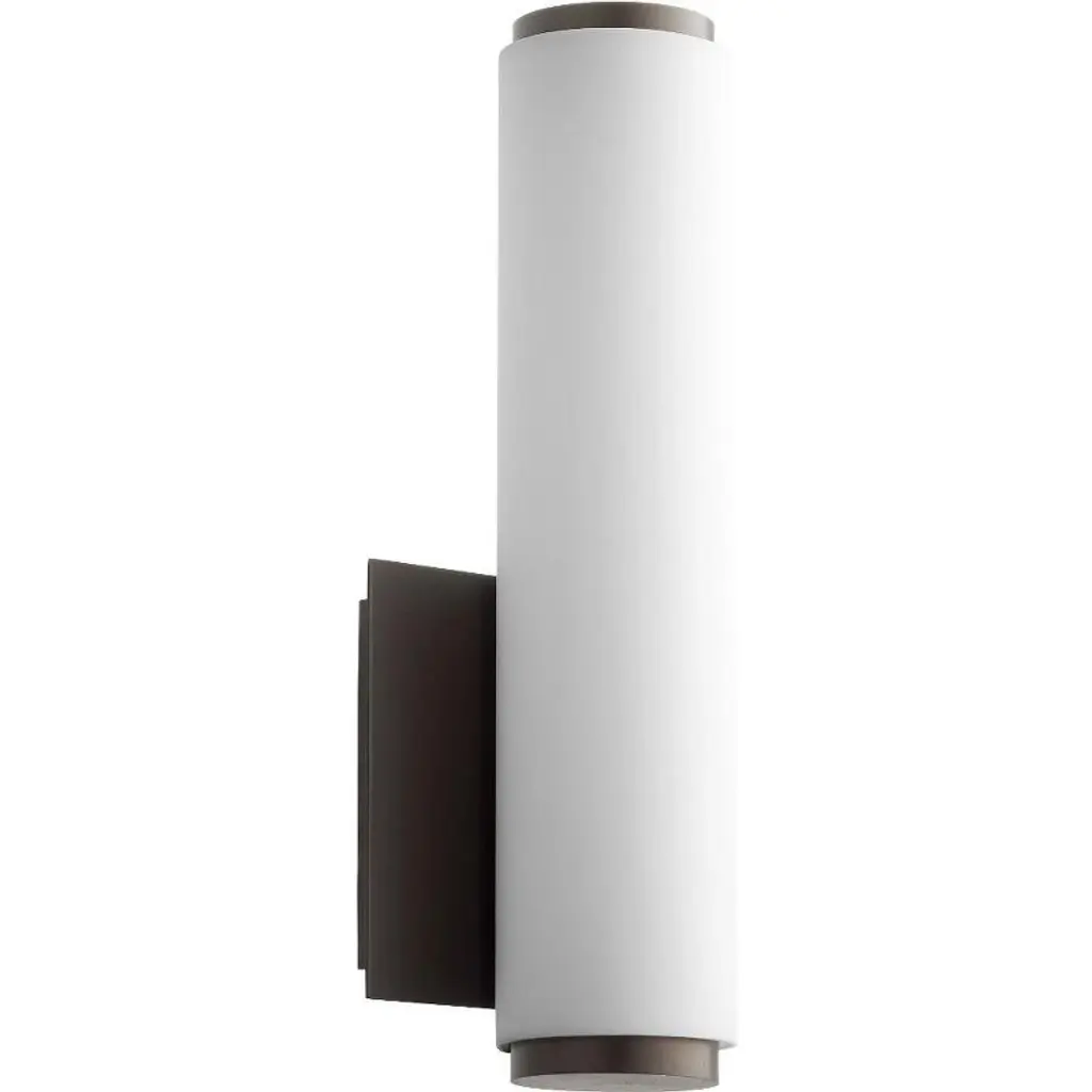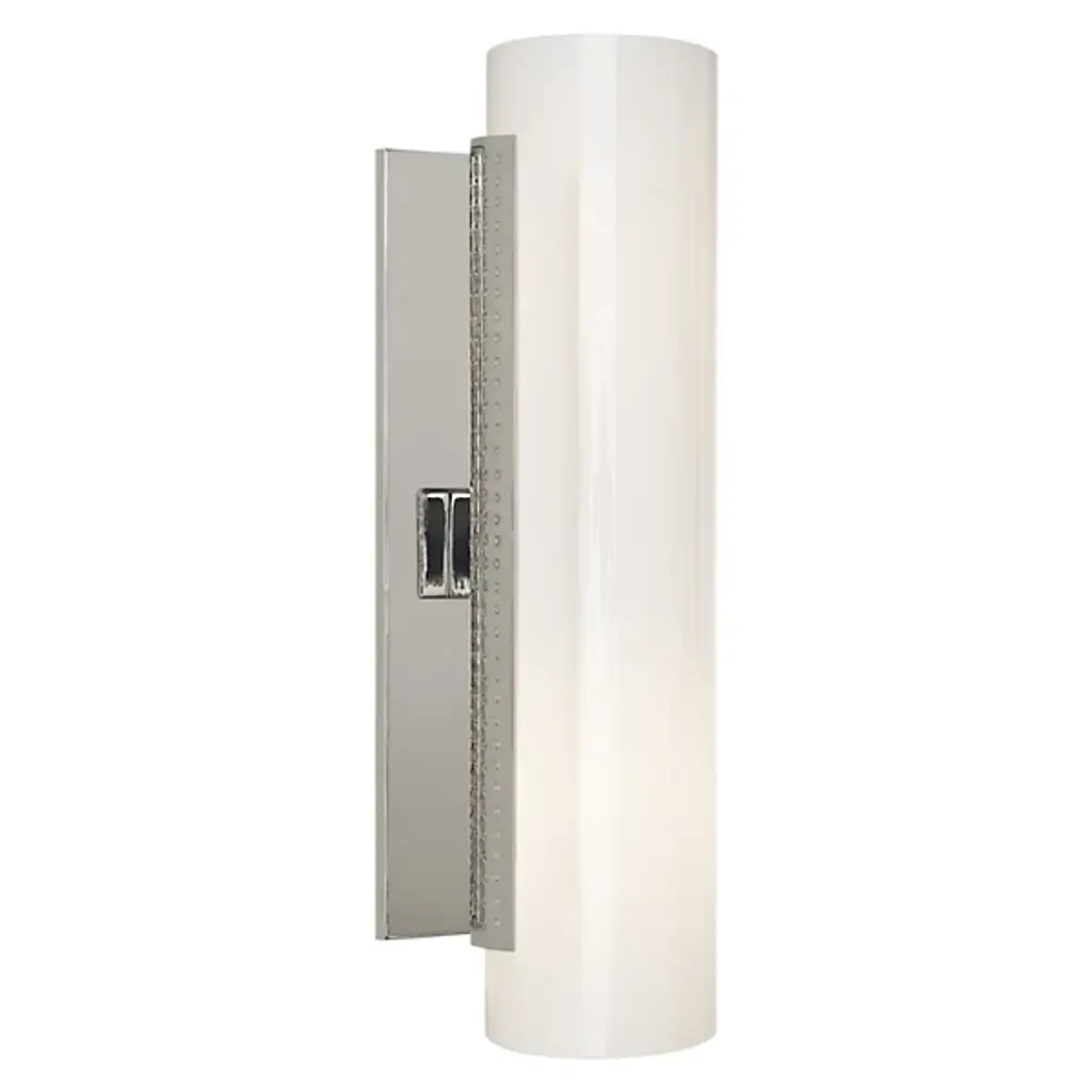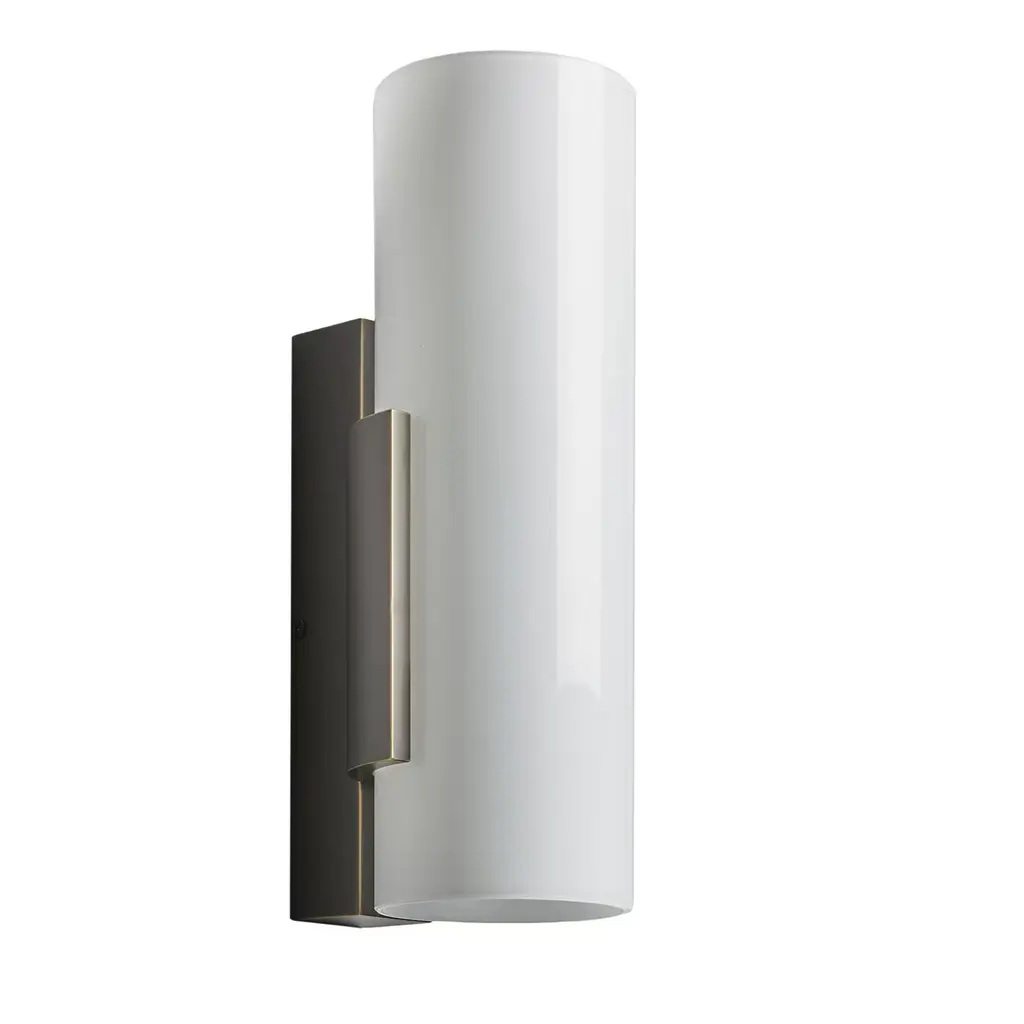 The Visual Comfort Signature, formerly known as Visual Comfort, Precision Cylinder Wall Sconce portrays a simple and streamlined look with a glass diffuser juxtaposed against a metal backplate. Minimal with a sense of style, the illumination diffuses through the opaque glass, creating a lit atmosphere with a modern meets less-is-more aesthetic.