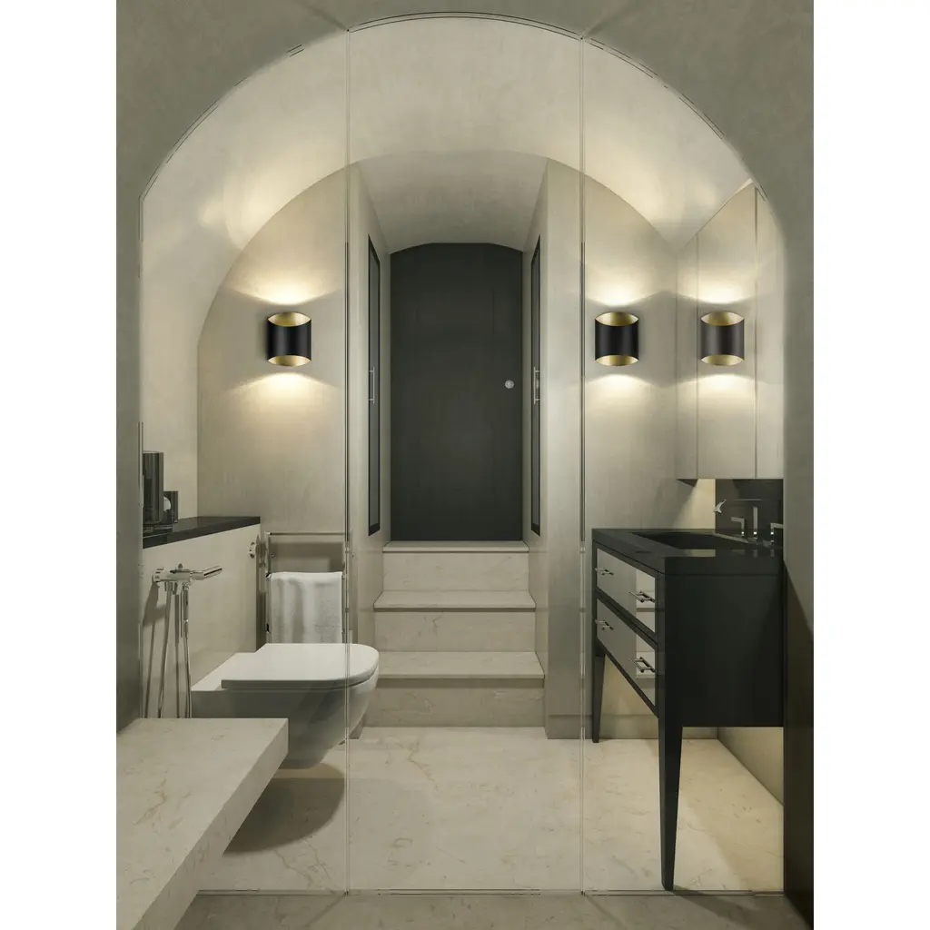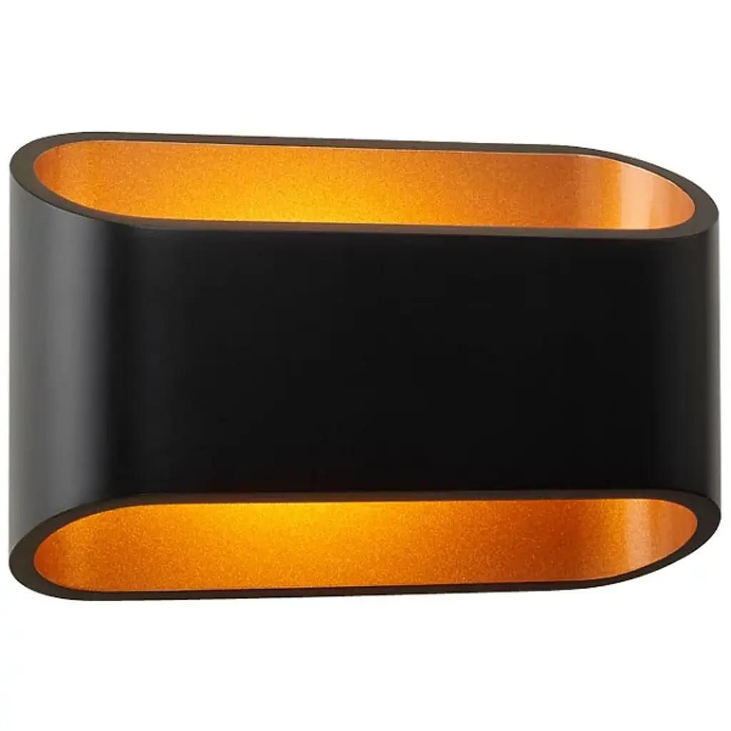 Single lamp LED wall sconce with either a flat black with fine gold interior or white with sleek silver interior unique metal casing. Equipped with our powerful 120V AC LED technology