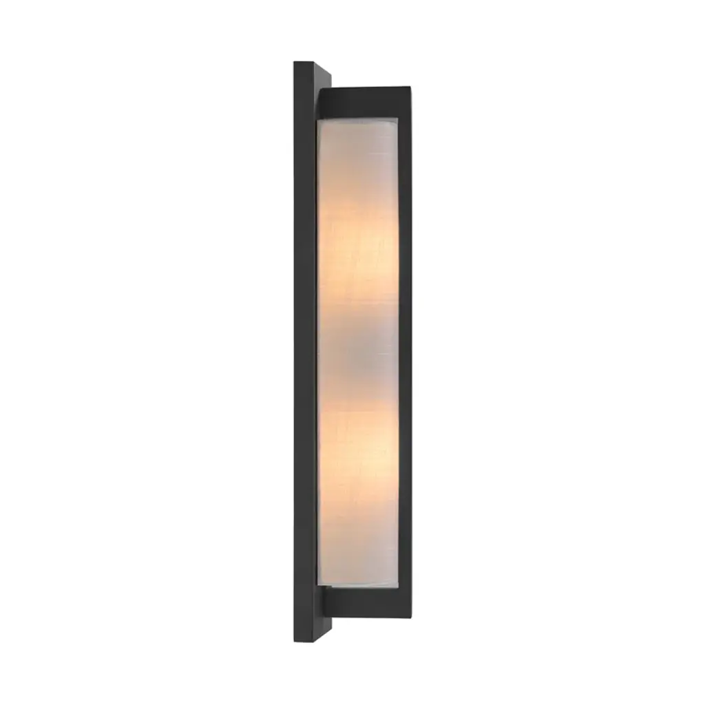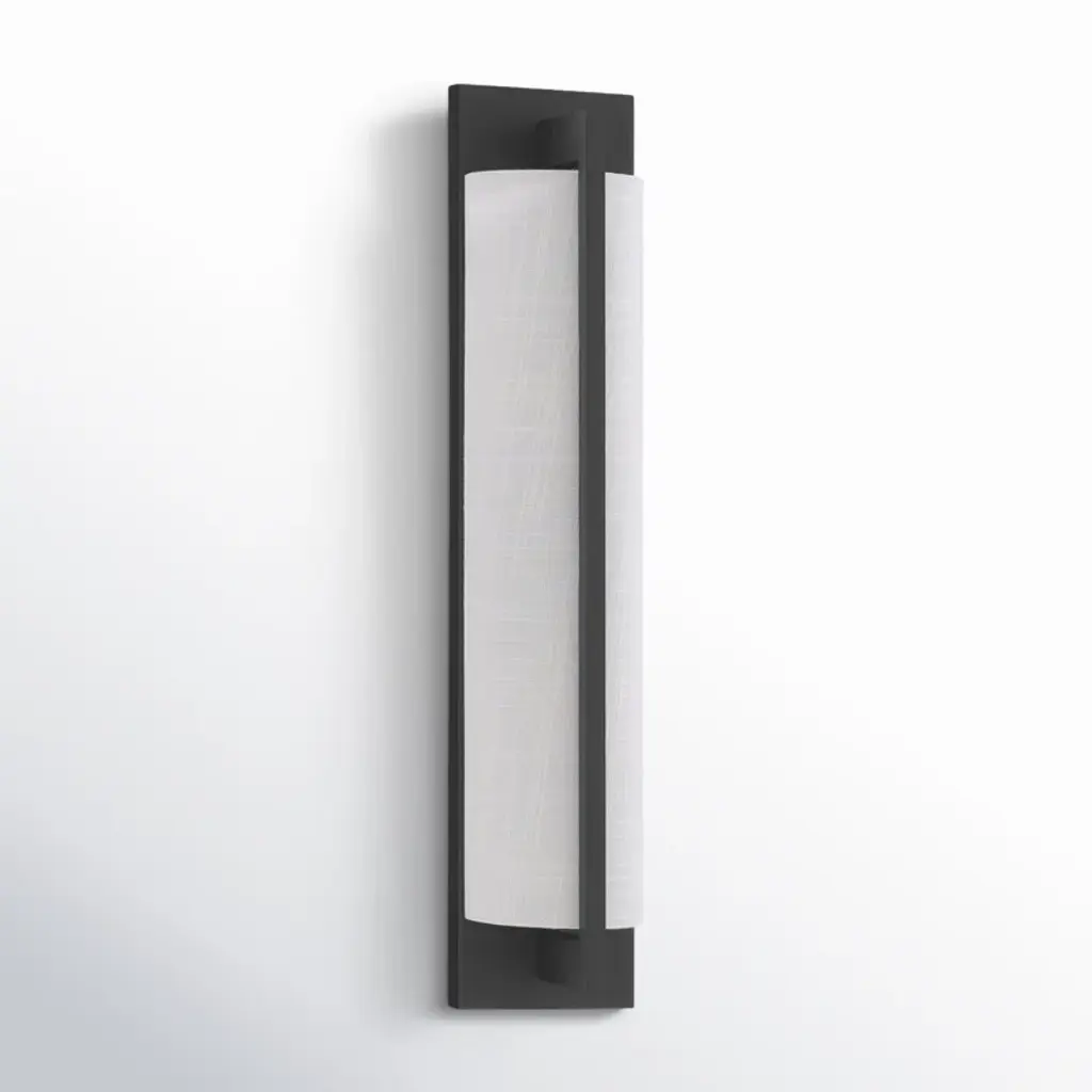 The Savoy House Carver 2-light sconce is oh-so sleek and oh-so chic. A long, tall white fabric shade is held to the backplate by an arm that overlaps the shade to create a sense of symmetry and is decorated. Carver is 22" in height, 4.5" in width, and extends 4" from the wall. Uses two candelabra-sized bulbs of up to 40 watts per bulb. Bulbs are not included.