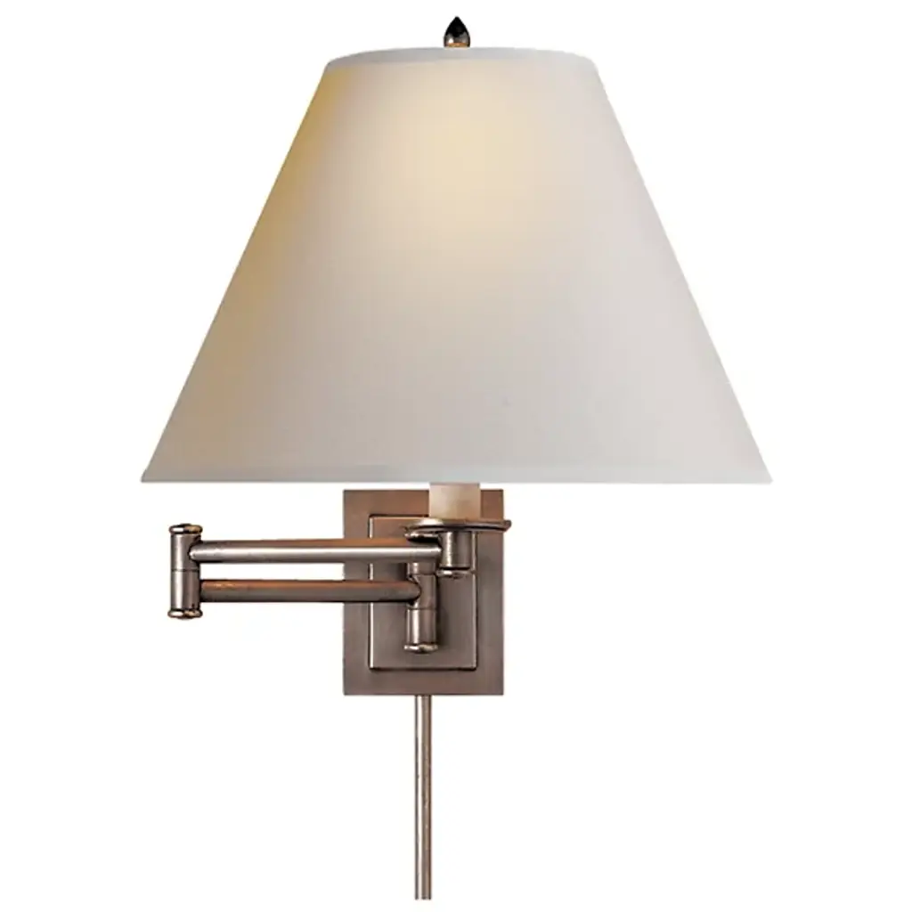 The Visual Comfort Signature, formerly known as Visual Comfort, Primitive Swing Arm Wall Sconce has that classic look with a modern utility twist. The timeless tapered shade is on an extendable arm, giving you the control over your own personal lighting needs. The iconic form will also complement a range of interior decors, from modern to transitional.