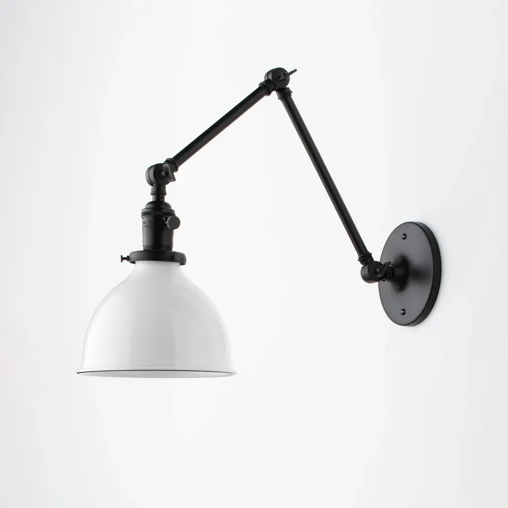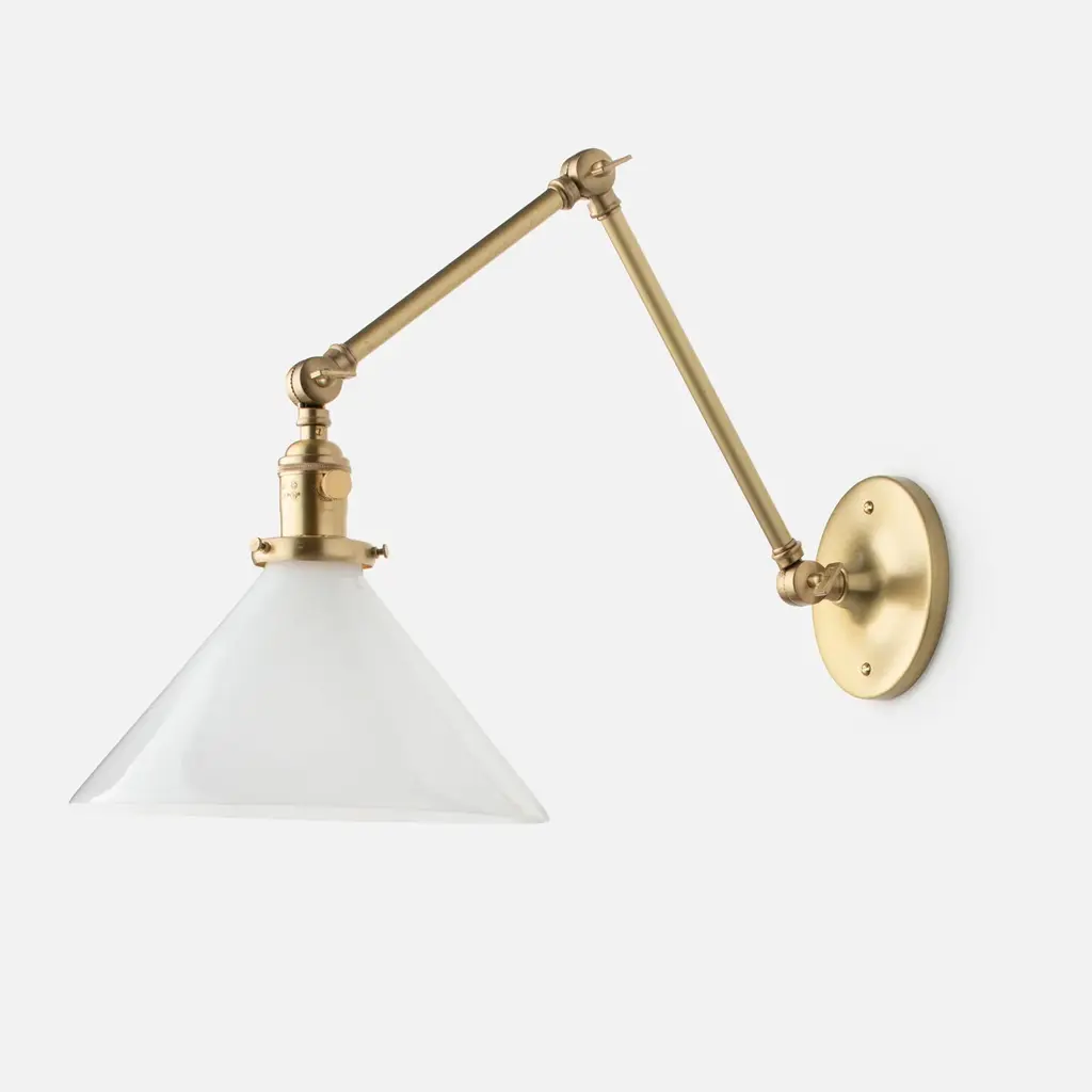 Stately, beautiful, and functional, the Princeton Long Wall Sconce is a timeless accent light for any room in the house. The perfect balance of function and form, an adjustable arm shines light where you need it while its classic silhouette adds a touch of luxury. Each hardwired wall sconce set comes complete with one of our vintage-inspired shades to easily personalize your space. Also available as a plug-in wall sconce. Assembled in our Portland, Ore. factory using ethically sourced domestic and global components. A Schoolhouse Original. Learn how to choose perfect wall sconce placement on our blog.