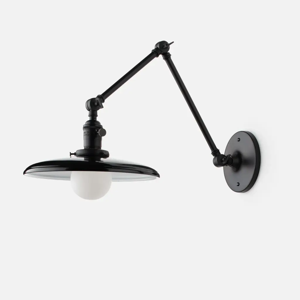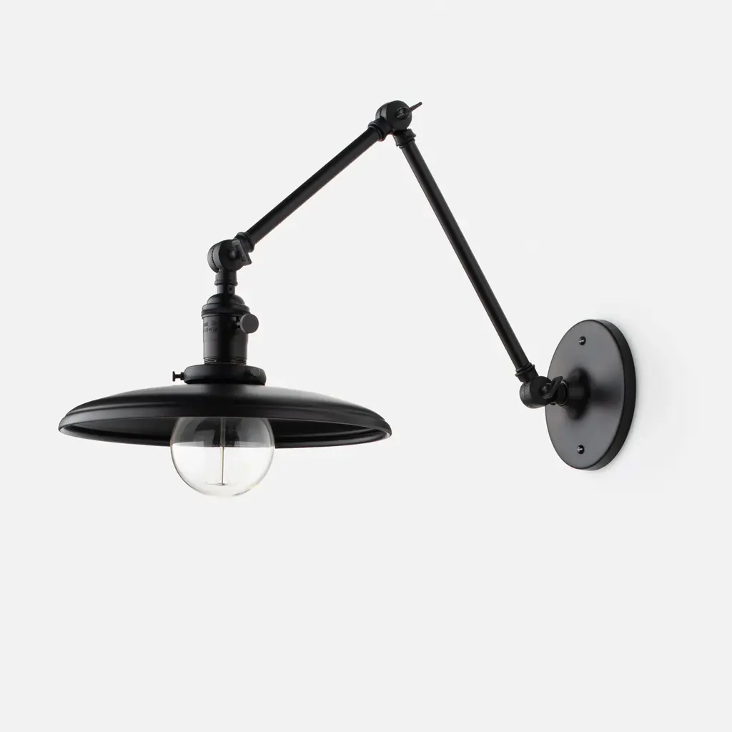 Stately, beautiful, and functional, the Princeton Long Wall Sconce is a timeless accent light for any room in the house. The perfect balance of function and form, an adjustable arm shines light where you need it while its classic silhouette adds a touch of luxury. Each hardwired wall sconce set comes complete with one of our vintage-inspired shades to easily personalize your space. Also available as a plug-in wall sconce. Assembled in our Portland, Ore. factory using ethically sourced domestic and global components. A Schoolhouse Original. Learn how to choose perfect wall sconce placement on our blog.