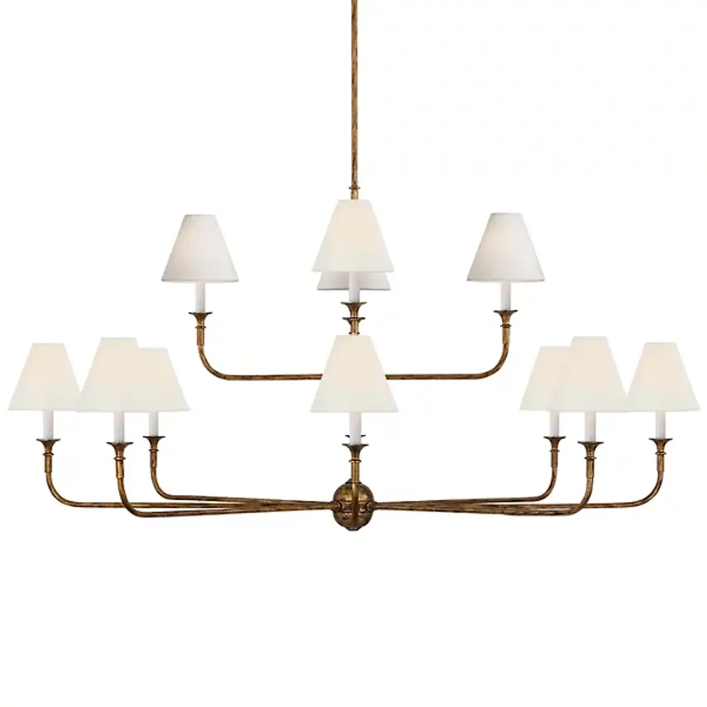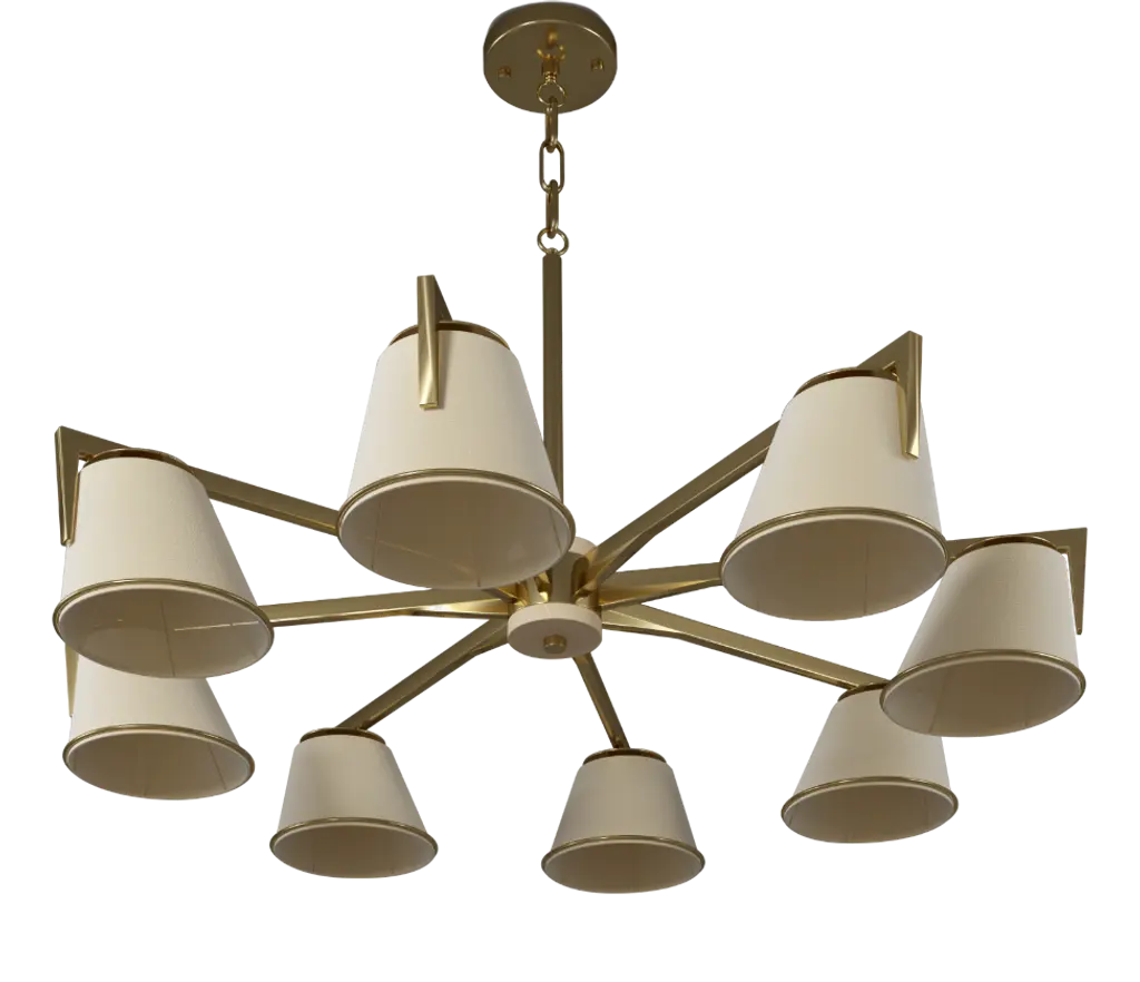 A truly regal allure is exuded by this wall lamp in polished brass, echoed in its name: the Italian for 'prince'. The half semi-sphere wall mount features six sinuous arms that branch out up to the ornate capital detailing standing right below the sockets where the E14 LED bulbs are fitted. Conical fabric shades with exquisite, golden piping along the borders complete the design.