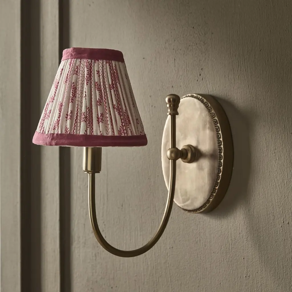 The perfect print. Ruched and stitched with ribbon trim on a milled steel frame, this 100% cotton shade adds soft texture to set a room aglow. Turn on the charm.