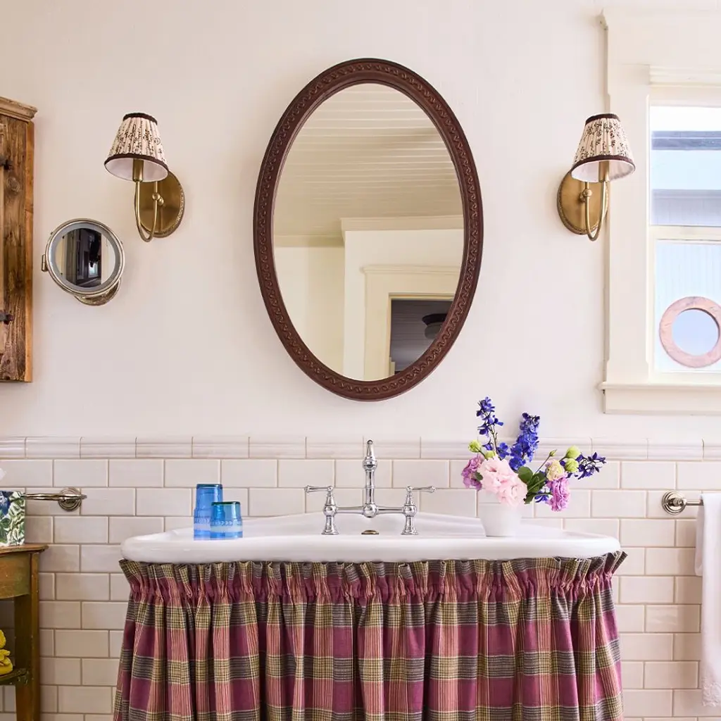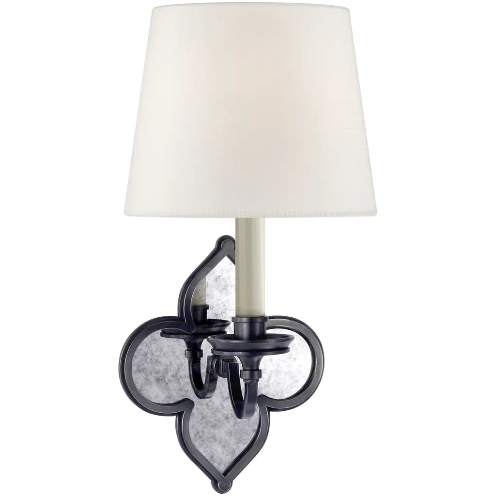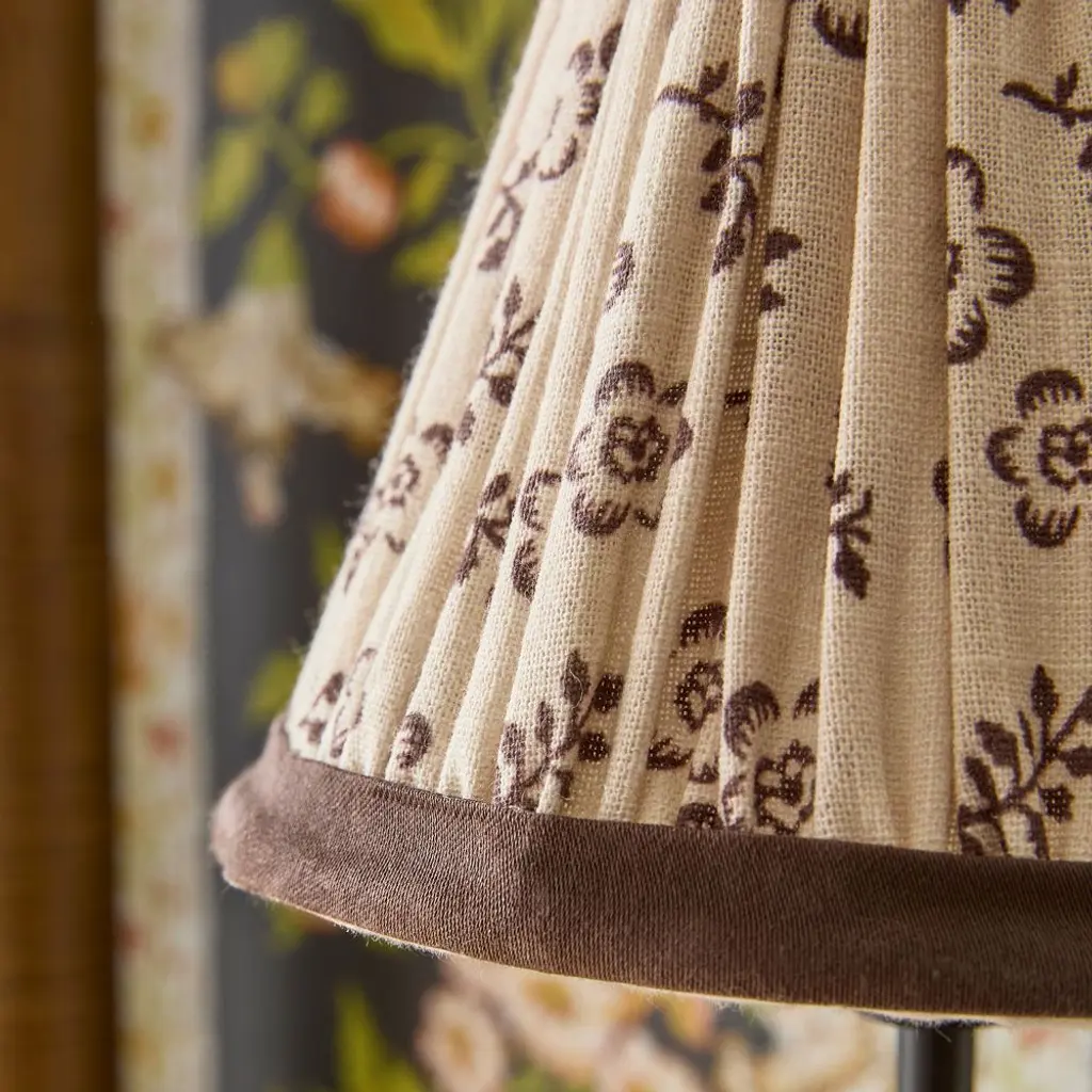 The perfect print. Ruched and stitched with ribbon trim on a milled steel frame, this 100% cotton shade adds soft texture to set a room aglow. Turn on the charm.