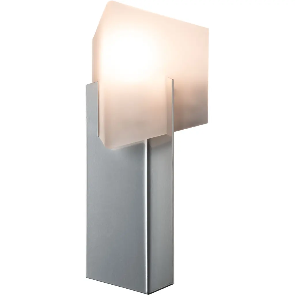 Beauty in a small package. The Prisma 1-Light Bath Sconce features a slumped white art glass combined with a vertical, very geometric metal element. The 90 degree angles of glass and metal are inverted layer-over-layer, with vertical metal pieces that secure the glass. Clean lines and simplicity make this a winner with any style.