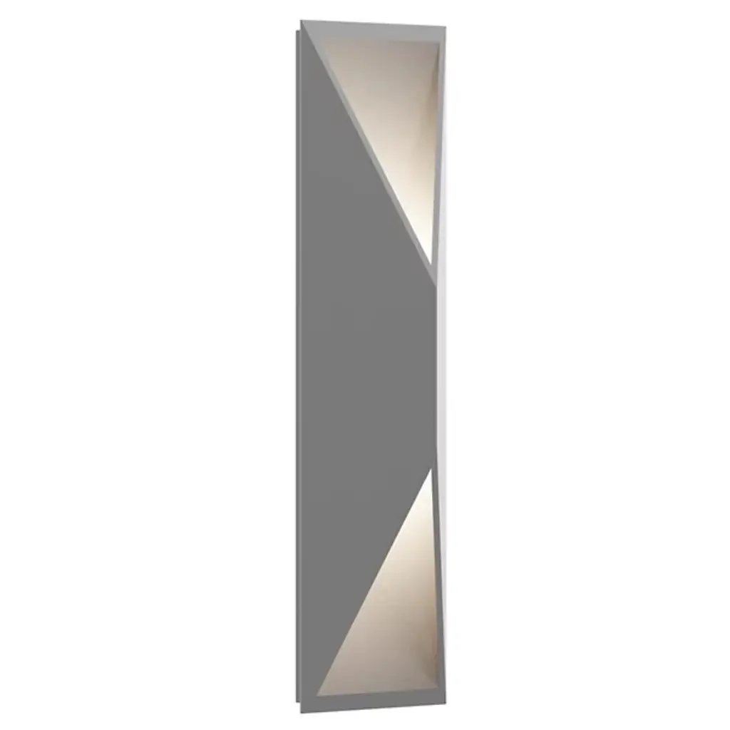 The angled cuts of these triangular forms reveal the LED illuminated surface within. Prisma fixtures offers alternate proportional renditions of this dramatically angular lighting form, at home inside or out.