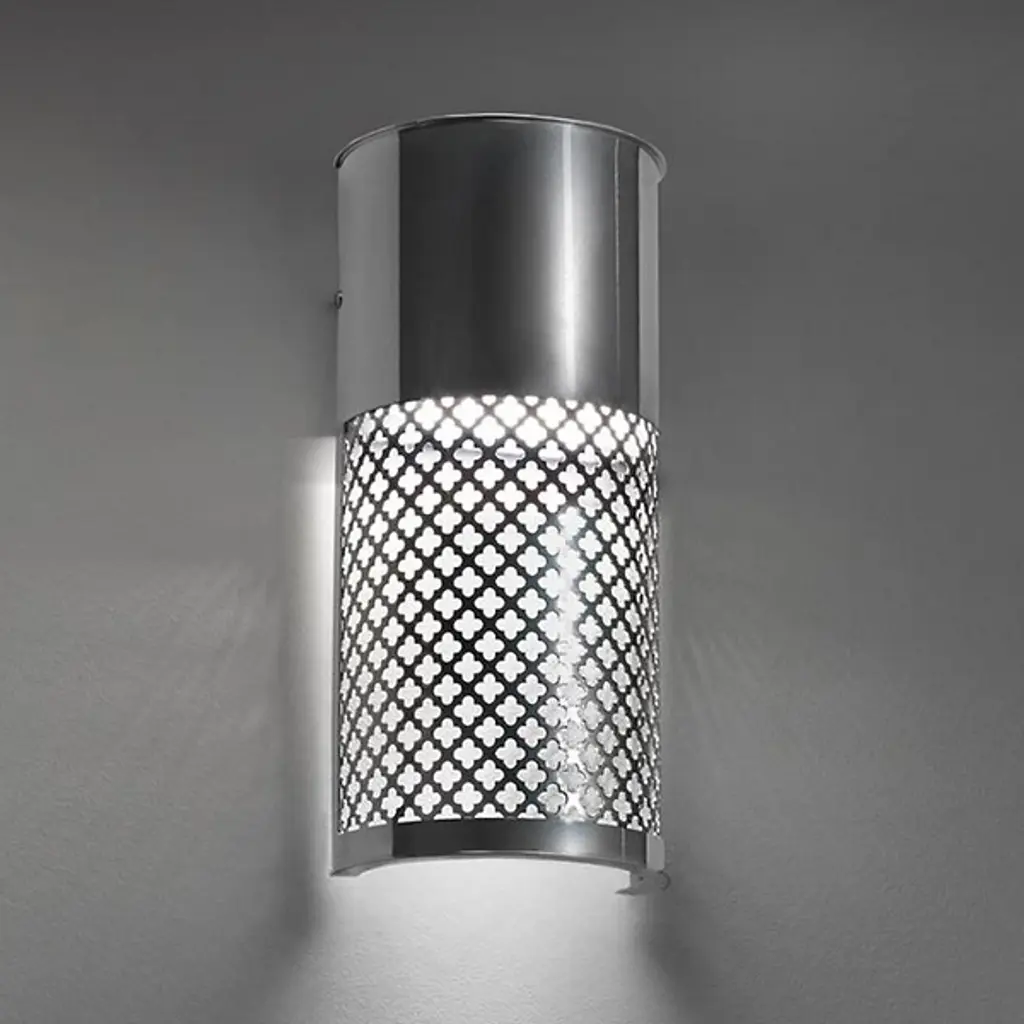 Guide the eyes from one space to the other with the elegantly silhouetted Profiles LED Cylindrical Wall Sconce from Ultralights. The tight, compact form of this piece makes near any wall a great candidate. Handcrafted in Tucson, Arizona, sharp metal rounds in a two-part cylinder, one side with a flat surface and the other with an elegant ornamental pattern. The fine pattern jumps from the wall as an LED ambient light shines behind it to create a radiant background.