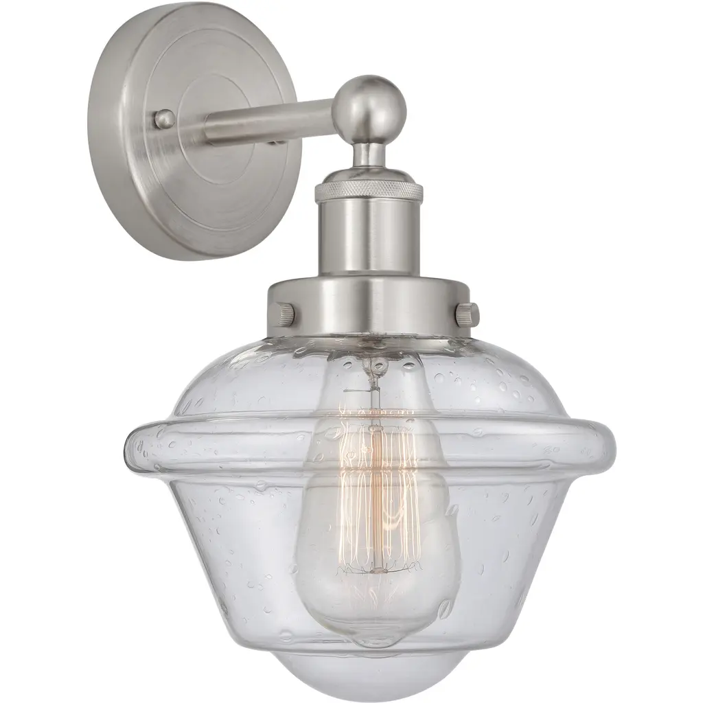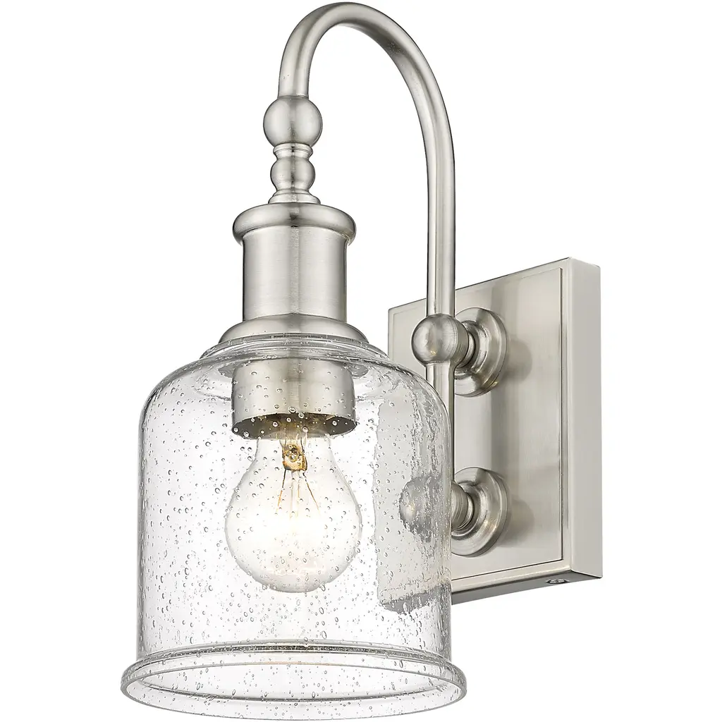 Introducing the Progress Lighting Tremont Collection 1-Light Clear Seeded Glass Stainless Steel Industrial Outdoor Medium Wall Lantern Light. This stunning outdoor wall light features a clear seeded glass shade that exudes rustic charm, reminiscent of raindrops on a window after a summer thunderstorm. The industrial aesthetic is accentuated by the matte black finish on the round backplate, curved arm, and round shade, adorned with mechanical stainless steel fittings. With a width of 10", height of 11", and a depth of 6.31", this wet-rated wall lantern is perfect for illuminating outdoor spaces. The light requires one incandescent bulb with a wattage of 60 watts, creating a warm and inviting ambiance. Welcome your guests home with the timeless appeal of the Tremont Collection.
