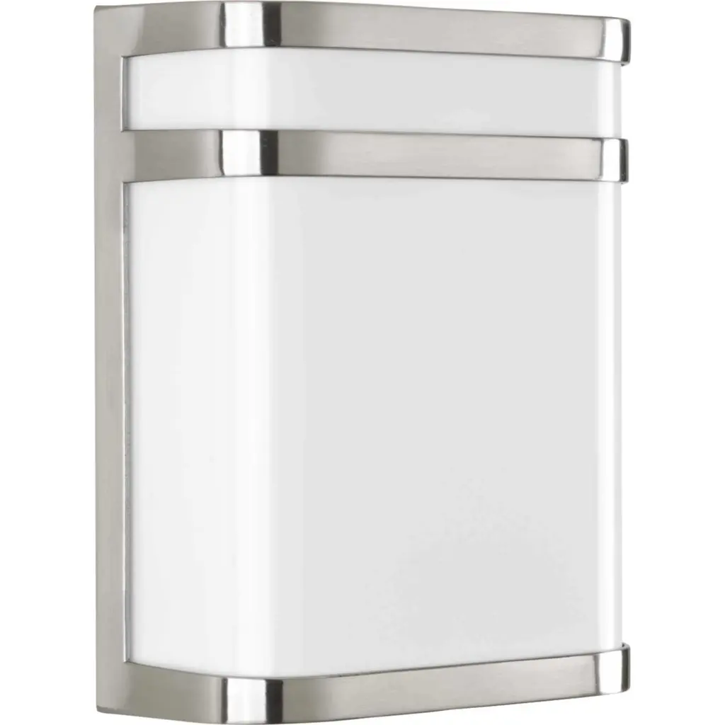 Progress Lighting Valera 1-light Led Outdoor Wall Lantern In Brushed Nickel With Matte White Acrylic Shade