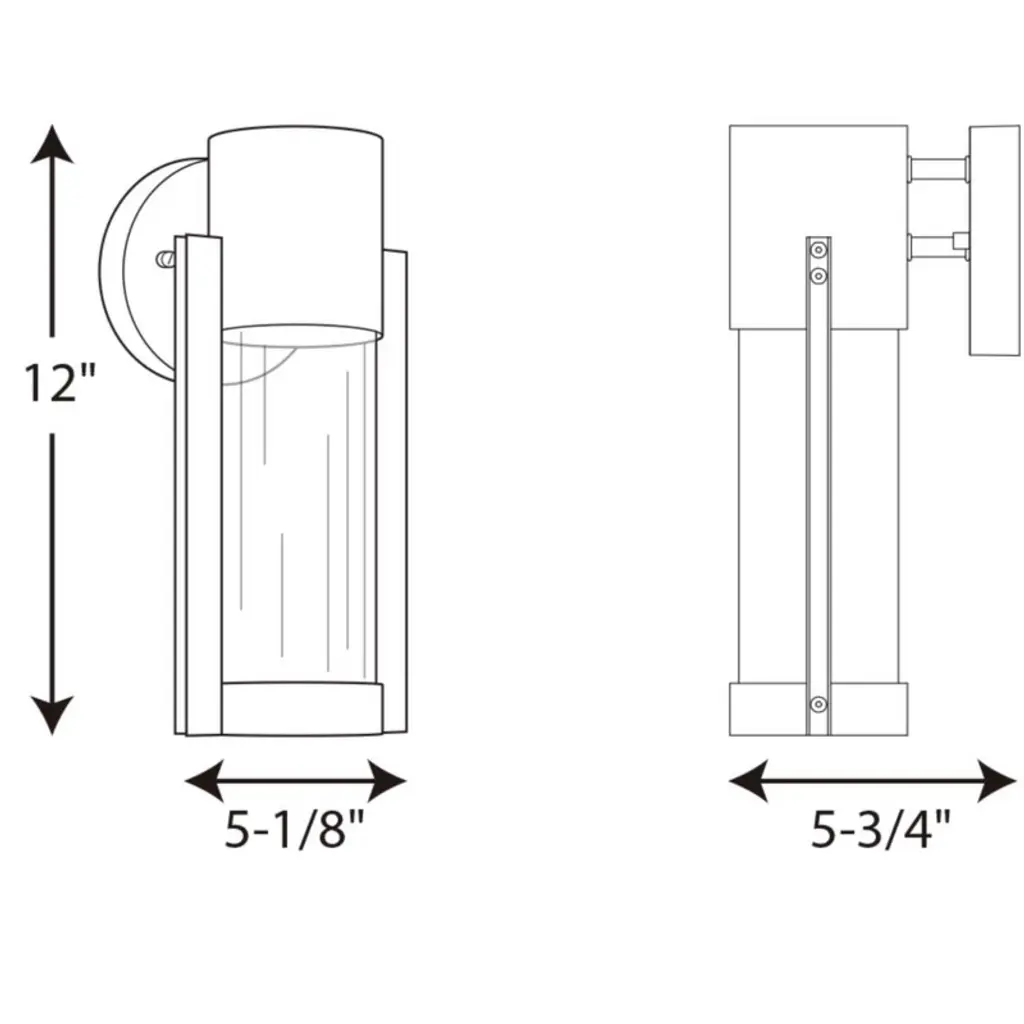 Introducing the Z-1030 Collection from Progress Lighting, featuring a modern small outdoor LED sconce crafted from durable aluminum in a sleek white finish. With a width and length of 5.13" and a height of 12", this fixture boasts a depth of 5.75" and a height from the outlet box of 2.25". The backplate measures 4.75" in width and 1" in length. Equipped with energy-efficient LED technology, this sconce requires only 9 watts of power while delivering 333 lumens of warm 3000 Kelvin light with a high CRI of 90. The fixture is wet rated for outdoor use and features a clear glass diffuser within an architectural-inspired open linear frame. The shade dimensions are 3.13" x 8.38". Elevate your outdoor space with the stylish and functional Z-1030 LED sconce from Progress Lighting.