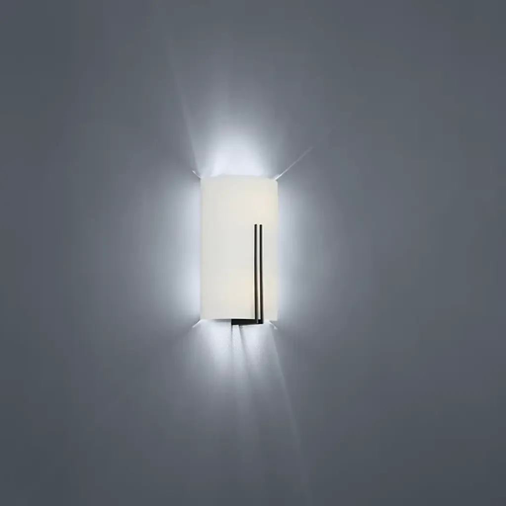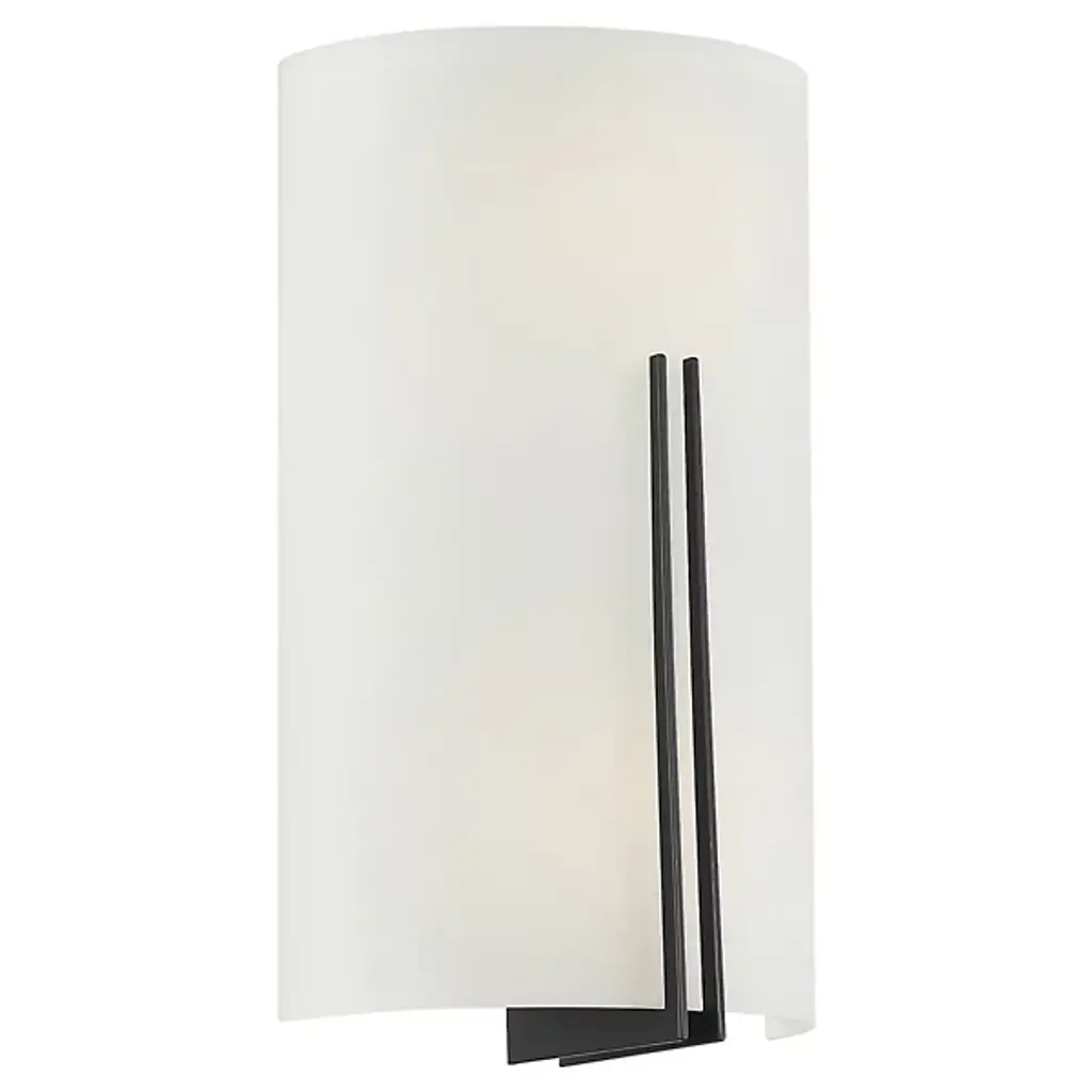 Modern in every sense, this fixture is a bold statement piece for stylish interiors. The Prong Wall Sconce by Access Lighting is designed with a minimal profile for a bold look. It starts with a broad curved Frosted White Glass diffuser that softens and distributes light from its vibrant fixture. That diffuser is held in place by two stylish prongs, each of which extends out from its hidden backplate. It uses a classic wall mounted lamp profile to create a familiar form, done up big with a necessary twist. A must have for bedrooms, living rooms, and much more.