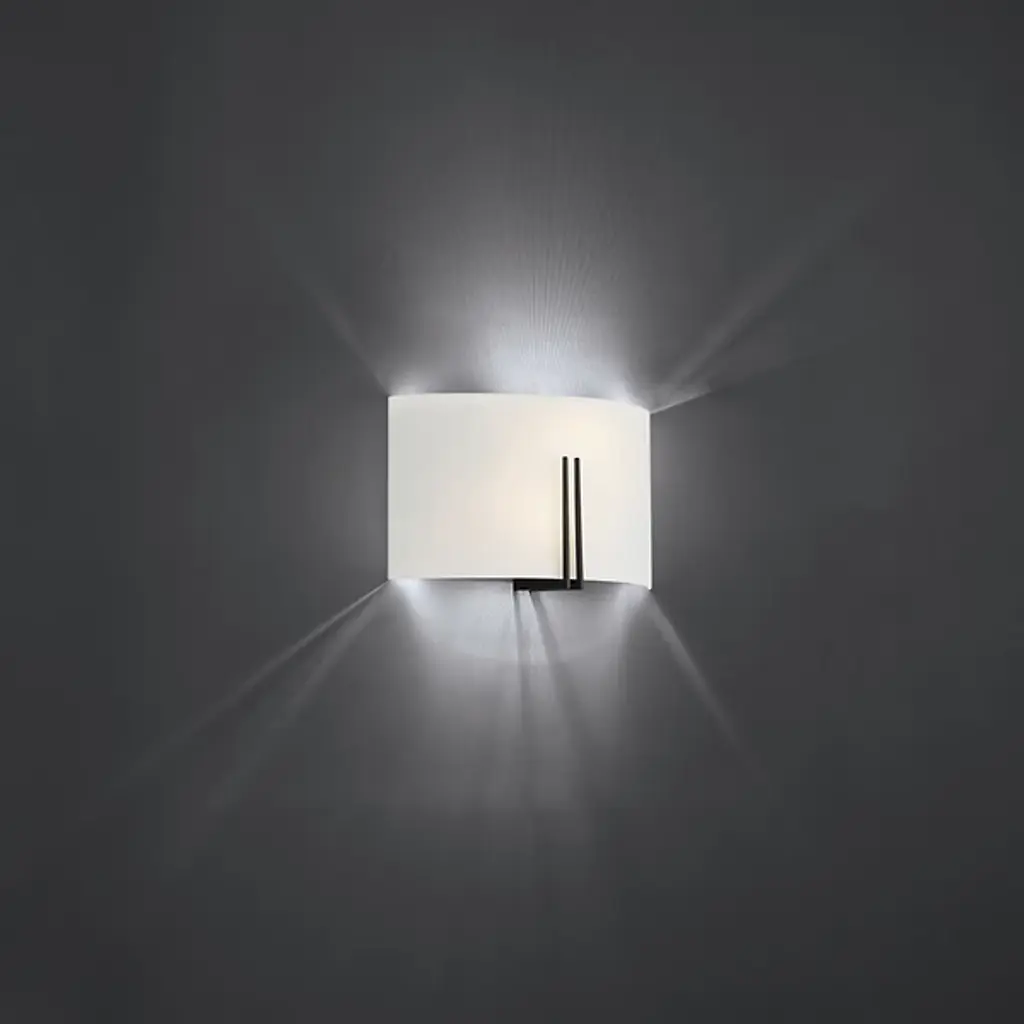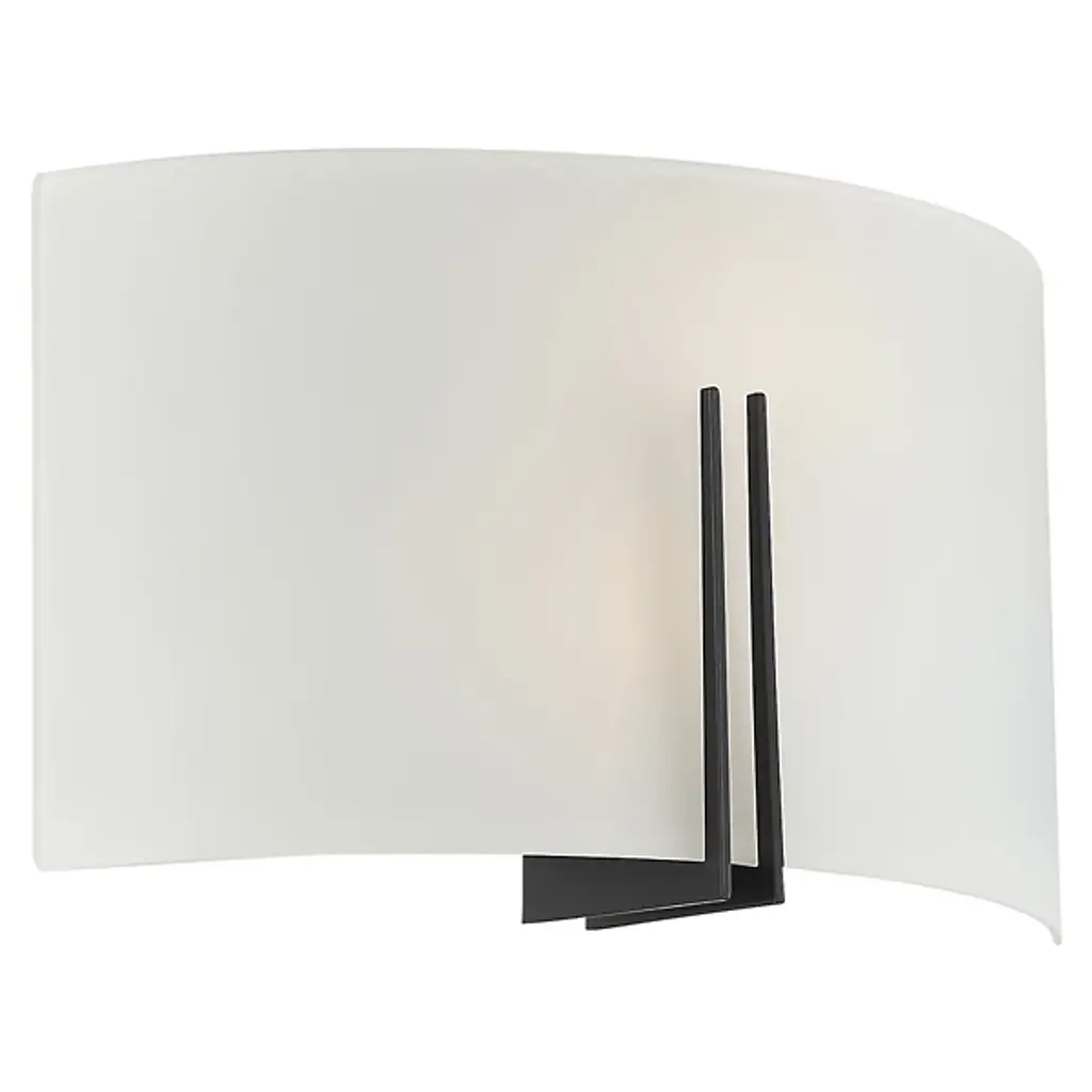 A bold statement from, a minimal design. Defined by its broad curved shade, Access Lighting’s Prong Wide Wall Sconce is the perfect choice for any home. The Frosted White Glass shade is intersected by two prongs extending from the hidden Steel backplate. Thanks to the large shade, this fixture casts a beautiful glow to the surrounding space. Mount in a series along a hallway or flank a bathroom vanity for the perfect modern look.