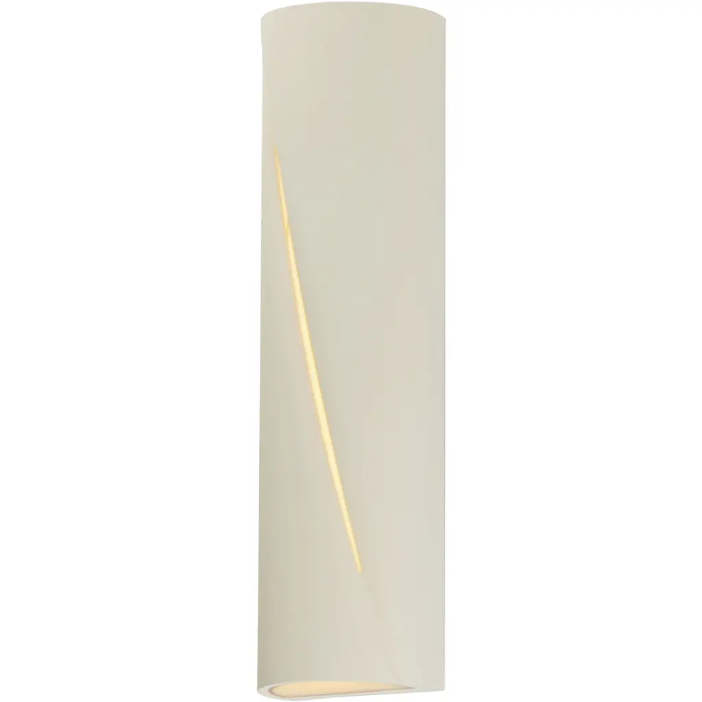 Softly rounding forms are constructed of outdoor-rated concrete molds. Finished in Greystone or Chalky White, these sconces are both playful and sophisticated. A diagonal reveal along the fixture's body emits light while also casting light above and below the fixture.