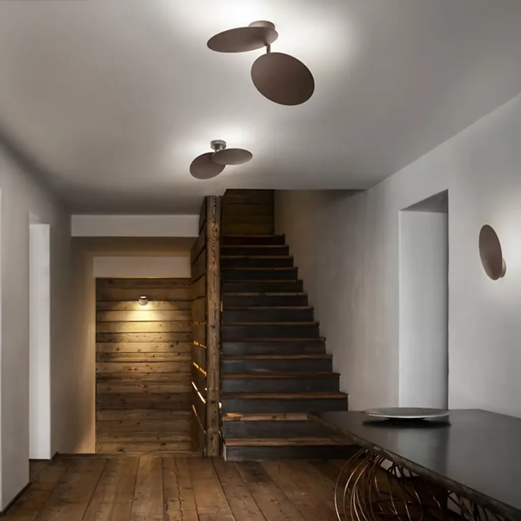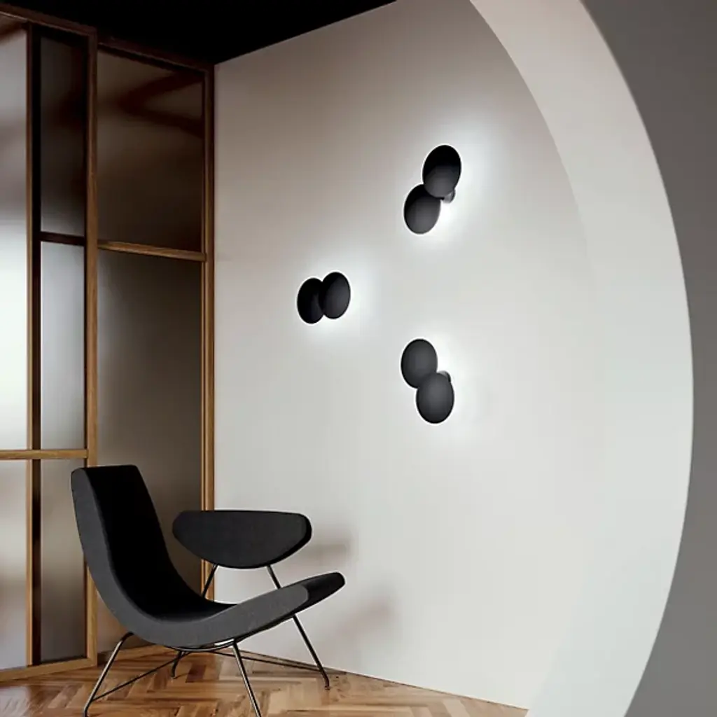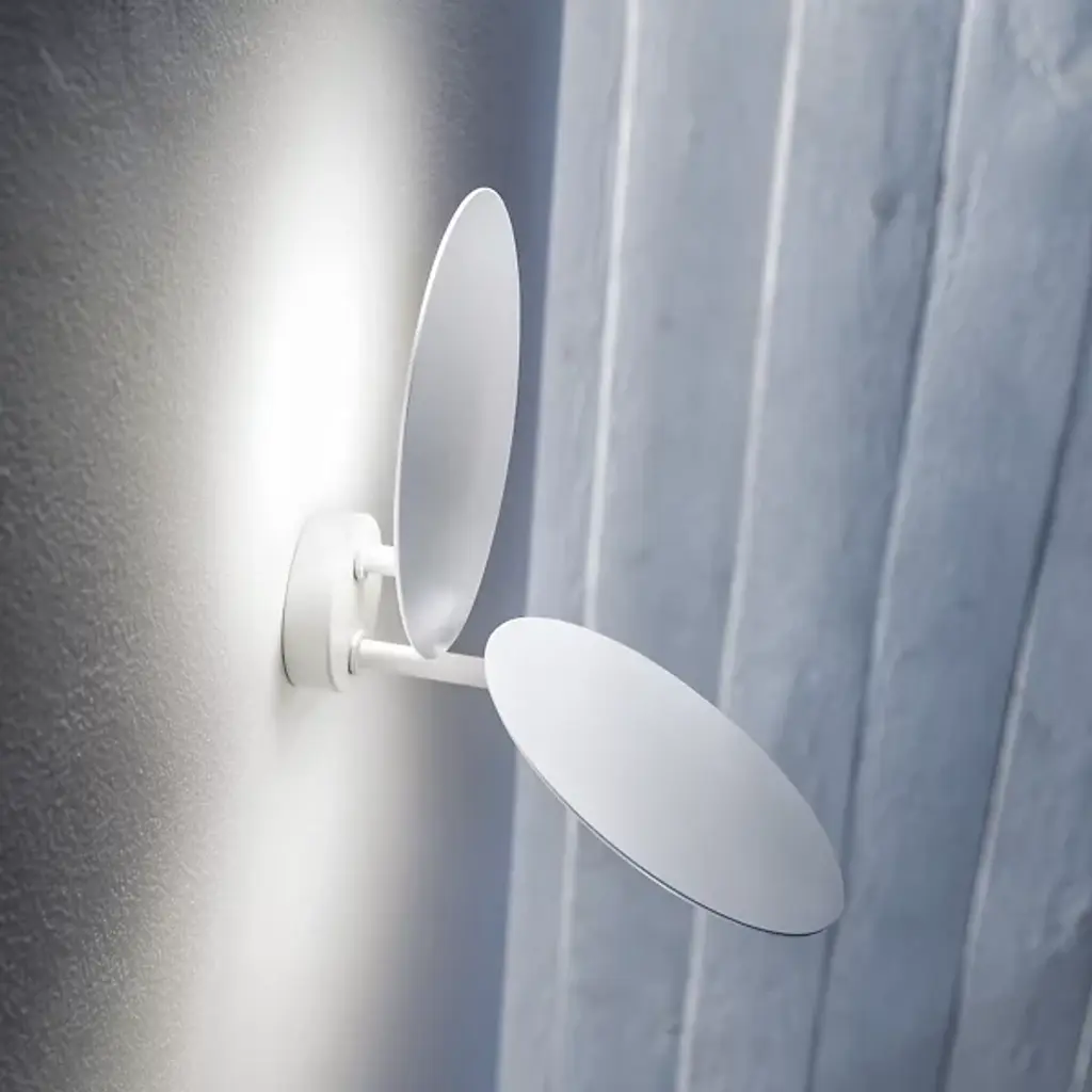 The Puzzle LED Double Wall/Flushmount by LODES features 2 slightly overlapping discs to provide indirect ambient or soft directional light. Both round reflectors feature their own hidden LED light sources and can tilt outward up to 85 degrees. One disc rotates 115 degrees and one rotates 355 degrees, making this fixture extremely versatile and practical. Can be installed as a flushmount or wall sconce.