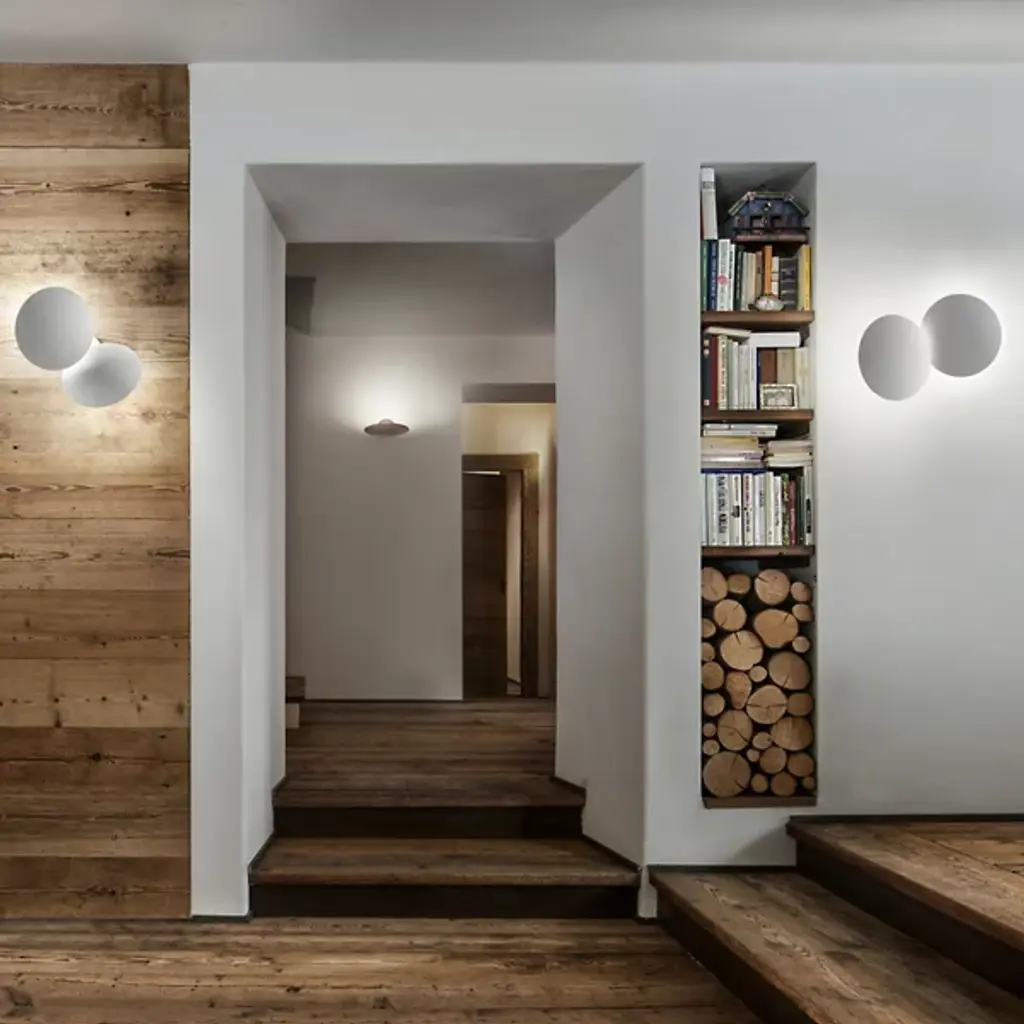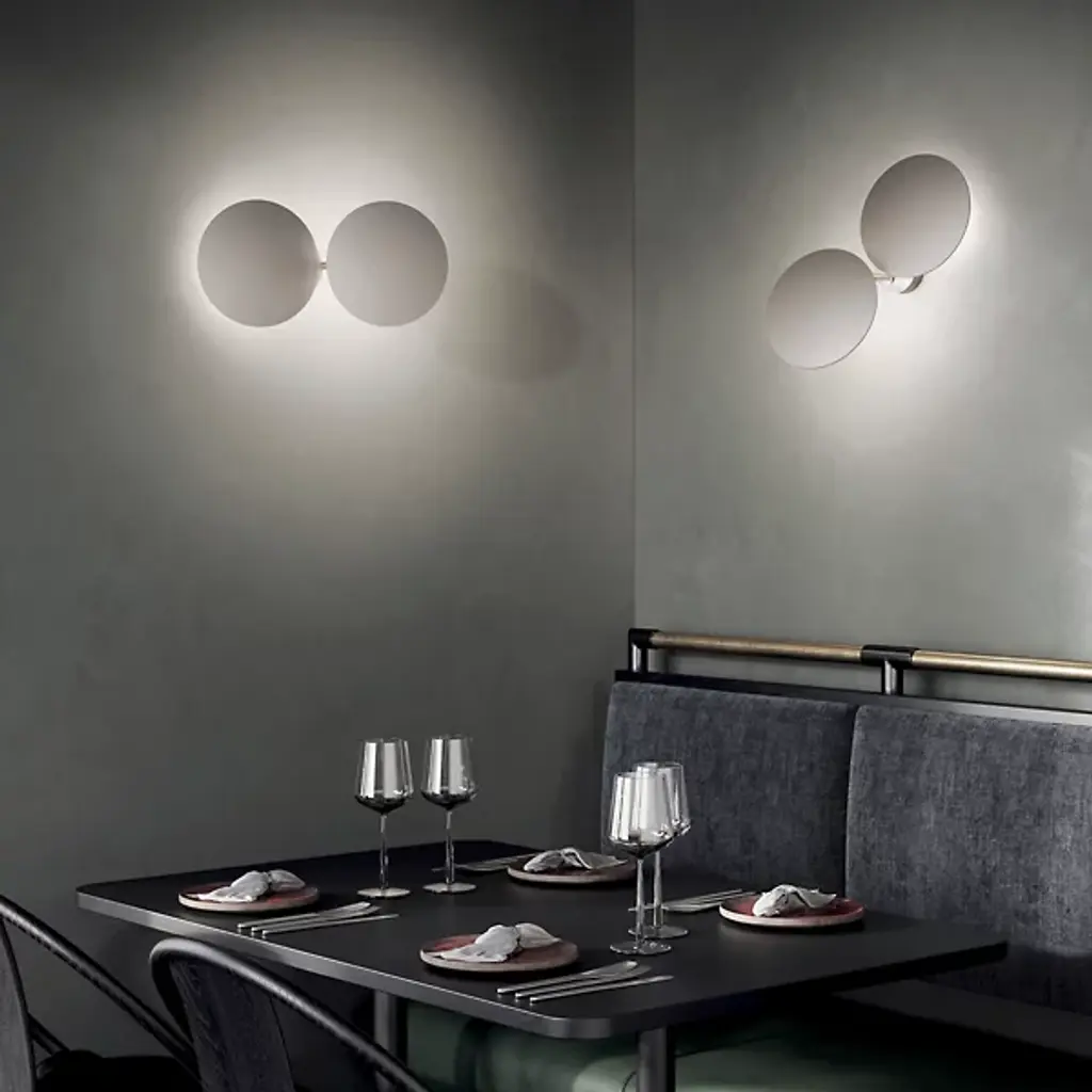 The Puzzle LED Double Wall/Flushmount by LODES features 2 slightly overlapping discs to provide indirect ambient or soft directional light. Both round reflectors feature their own hidden LED light sources and can tilt outward up to 85 degrees. One disc rotates 115 degrees and one rotates 355 degrees, making this fixture extremely versatile and practical. Can be installed as a flushmount or wall sconce.