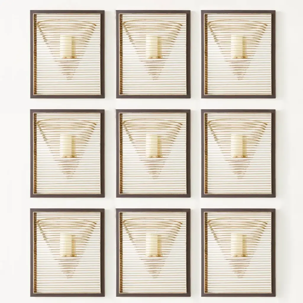 Inspired by a brooch, our Pyramid Candle Sconce is a visually complex head-turner. Thin gold leaf finished iron rods create a dimensional vortex that jumps out from the mirrored back. A tonal candle holder sits in the middle of the metal cyclone and warm brown frame completes the look. From a fashion forward perspective, Global Views offers accessories, furniture, statement lighting, and an assortment of rugs and mirrors to add beauty and joy to your home.
