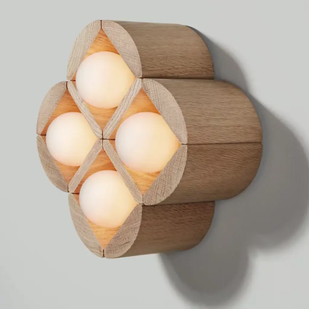Designed by best friends and hand-crafted in a New York studio, the Quad Dot Wall Sconce from Stickbulb adds tasteful texture to walls with a mix of architectural design and clean contemporary lines. The design's point is to use reclaimed or sustainably harvested wood and illuminate the square pockets, contrasting the artificial angularity with the natural material of the wood. A repeating motif of round posts with square lighting bays adds a simple architectural presence, the soothing translucent glass diffusers transforming bright light into an even ambiance channeled outward from the ADA-compliant fixture.