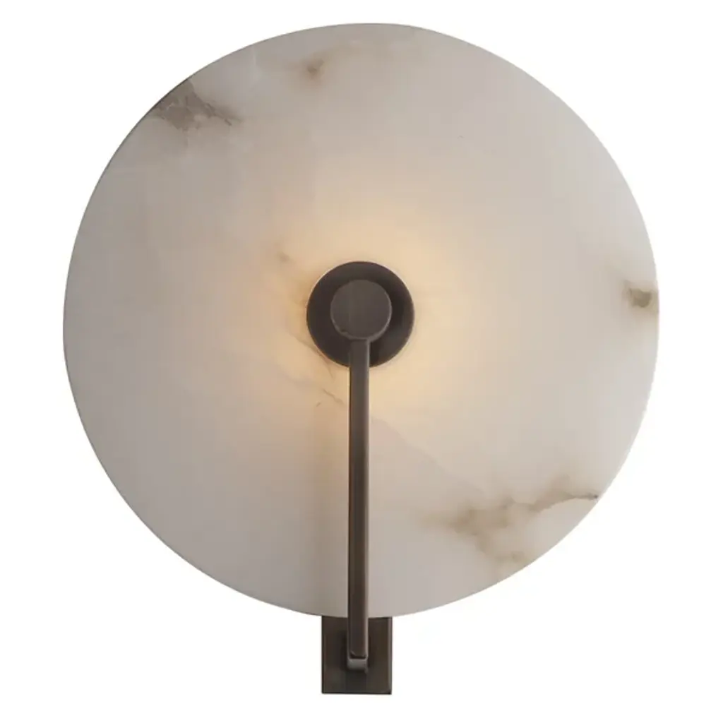 Modern in execution, yet representative of the classic inverted bowl pendants, the Quarry collection features natural Spanish alabaster in an iron frame finished in Darkened Bronze. An inverted bowl form is created using the alabaster's straight line and the empty space below it. Slim housings of LED direct light both up at the alabaster to highlight the stone's character, while another direct light downward for functional use below.
