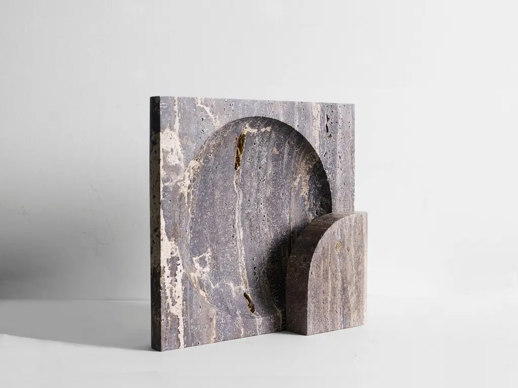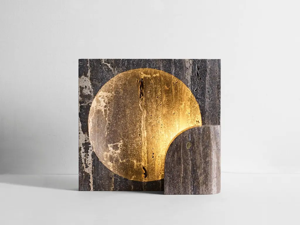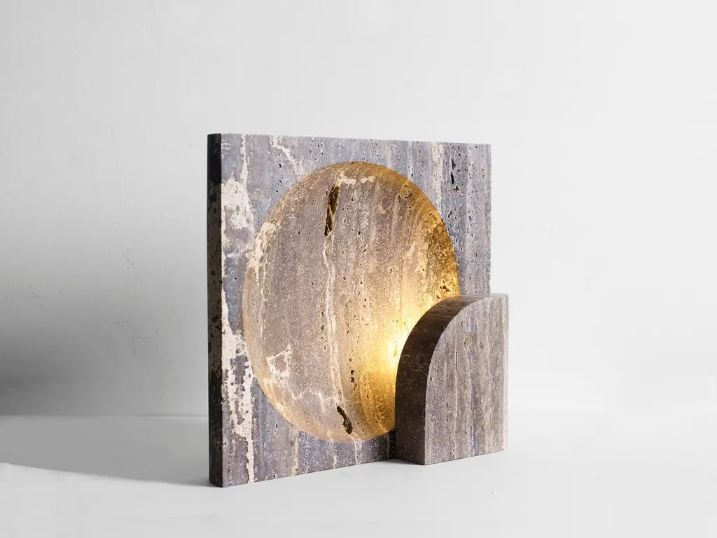 Quarter-Circle And Square Black Travertine Block Sconce By Henry Wilson