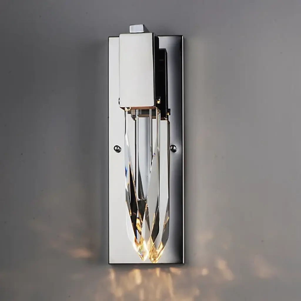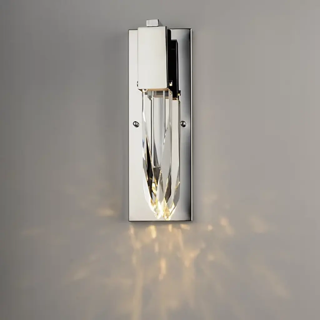 The Quartz LED Wall Sconce by ET2 Lighting brings modern sleekness and natural style together to create a radiant decorative accent. A steel backplate supports the fixture, as an angular arm holds the faceted clear beveled crystal stone shade. Inside, an integrated LED light module illuminates the crystal and sends mesmerizing beams of refracted light around its area. This sophisticated fixture is suitable for both dry and damp spaces, making it ideal for use in bathrooms, hallways, or bedrooms.