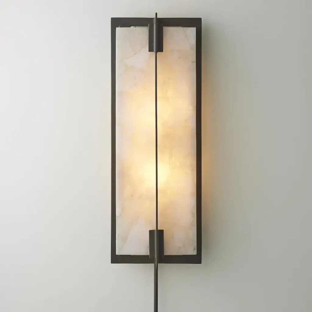 Delicate panels of quartz slide into the multi-faceted iron frame of the Quartz Sconces. The light cast through the translucent stone is unsurpassed in the warm glow it emits. Available in hardwired and portable versions. Vertical installation only. From a fashion forward perspective, Global Views offers accessories, furniture, statement lighting, and an assortment of rugs and mirrors to add beauty and joy to your home.