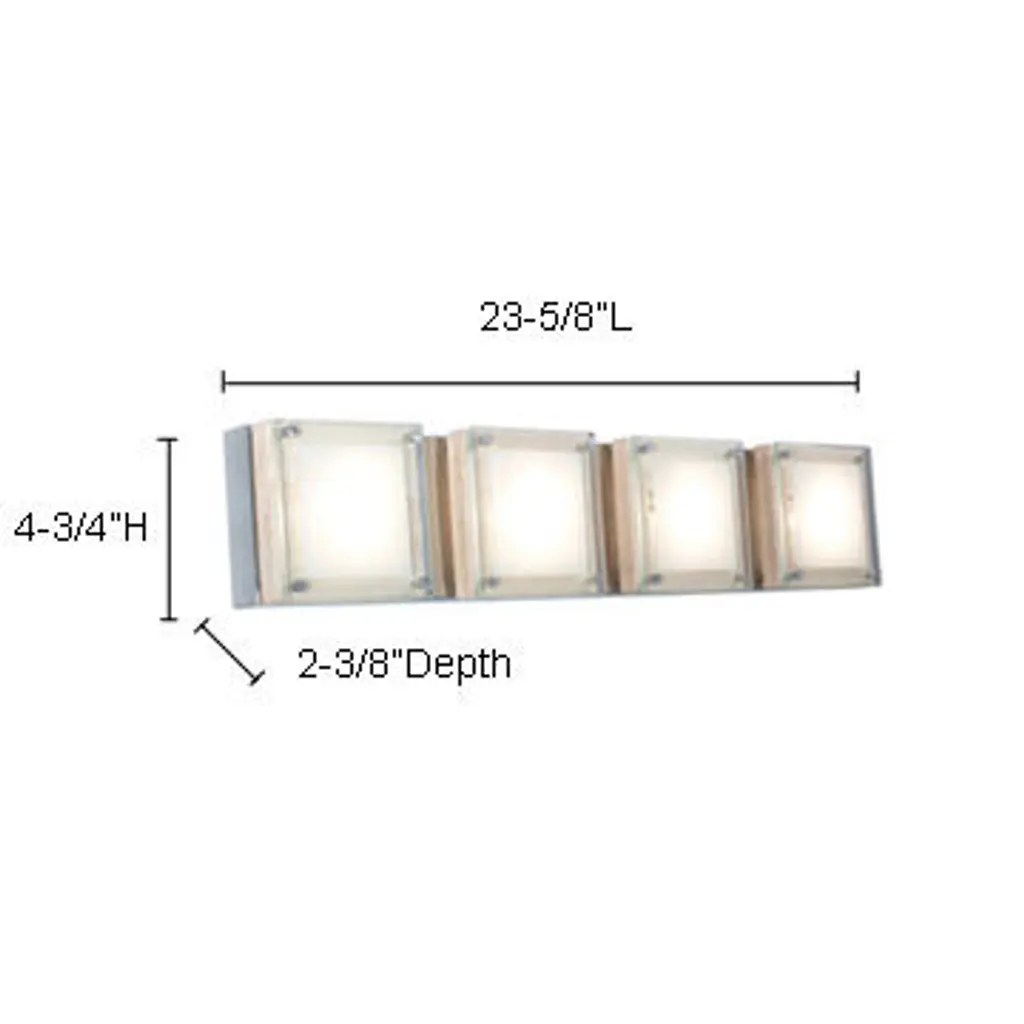 JESCO 4-Light Wall Sconce QUATTRO Low Voltage - Series 306 in Chrome. The elegant ensemble of square modules features a choice of chrome, glass, or birch wood trimming which may be custom-stained. Each individual module is finished with a pane of clear tempered glass with a perfectly square sand-blasted center. The QUATTRO Series Wall Sconces offered in both line and low voltage versions, is ADA compliant. A matching single-light pendant in low voltage is available.4-Light Wall Sconce QUATTRO Low Voltage - Series 306. Square Bar with Accent. With built in electronic transformer. Bulb Base: (1) G9 120V 25W Included. ETL Listed. Hardwire. Dry Location.