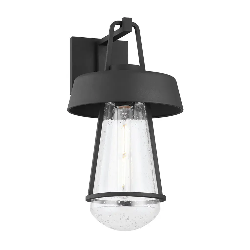 A bold modern design, the Quayside collection features intersecting aluminum frames that elegantly curve to meet at the base. Integrated cutting-edge LED technology provides ample downward lighting while maintaining Dark Sky compliance. Finished in a sleek Matte Black and crafted from Maxim's durable Vivex composite material, these fixtures are engineered to withstand the harshest climates. The collection includes a full range of outdoor lighting solutions, with multiple sconce sizes, a pendant, and a flush mount configuration to suit any exterior space.