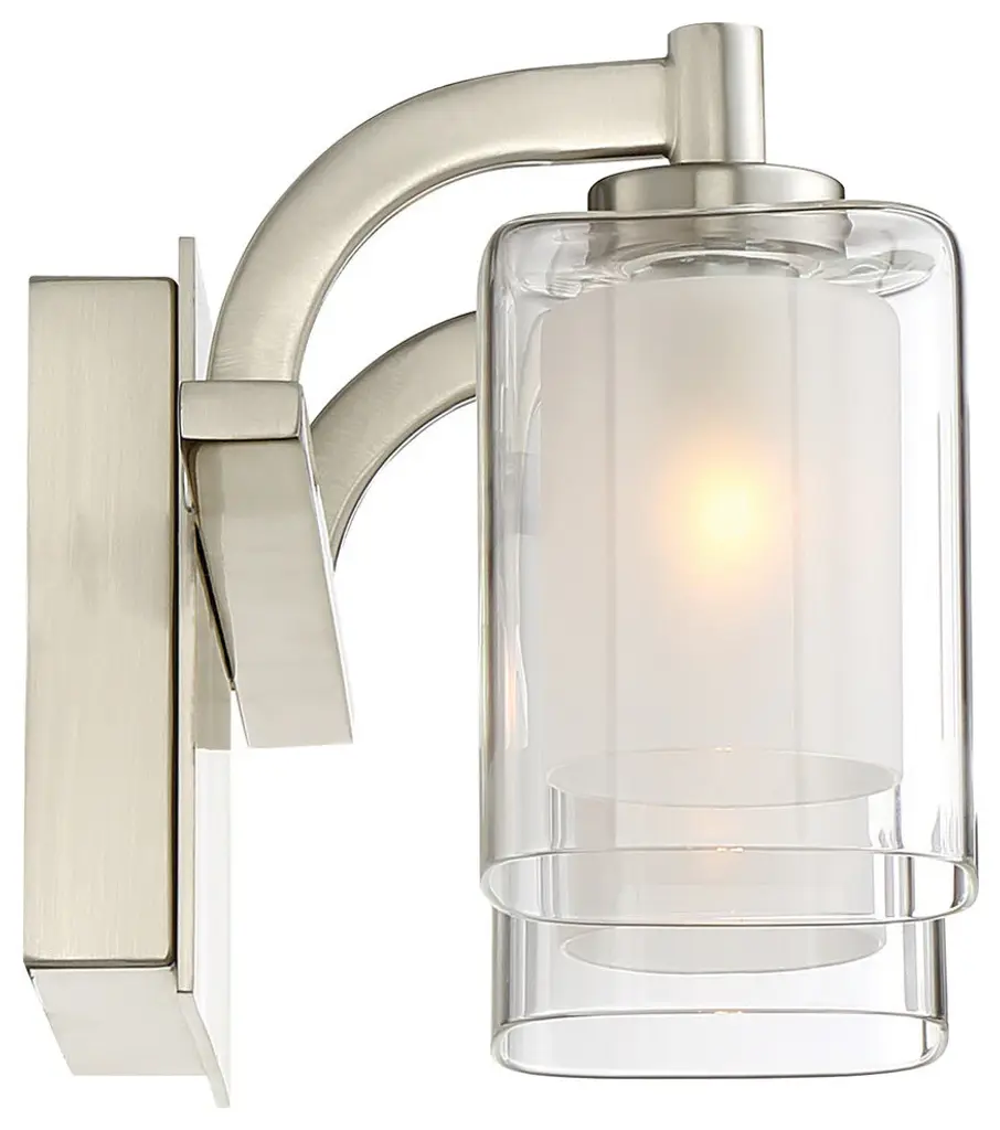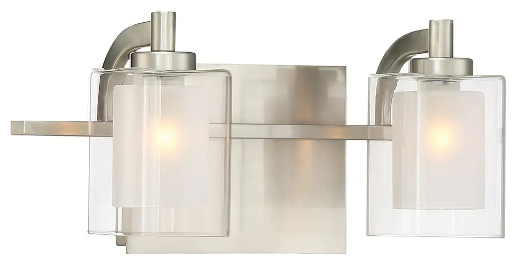 Two Light Bath from Kolt collection in Brushed Nickel finish. Number of Bulbs 2. Max Wattage 4.50 . No bulbs included. This modern posh collection features a simplistic design with a brushed nickel finish. The inner heavy glass is sand-blasted inside and encased within outer clear glass for a sophisticated and stunning look. No UL Availability at this time.