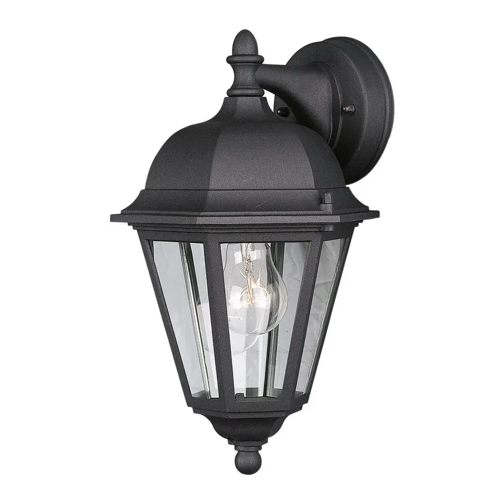 Finish Color: Black, Width: 8", Height: 15", Depth: 8.5", Lamping Type: Incandescent, Number Of Bulbs: 1, Wattage: 60 Watts, Moisture Rating: Wet Rated, Desc: Shade Included: Yes. ,