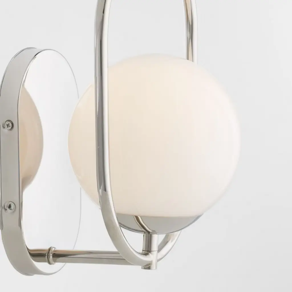 Collection: Belmont, Finish Color: Polished Nickel, Width: 7.5", Height: 12", Depth: 7.75", Lamping Type: Incandescent, Number Of Bulbs: 1, Wattage: 60 Watts, Moisture Rating: Damp Rated,