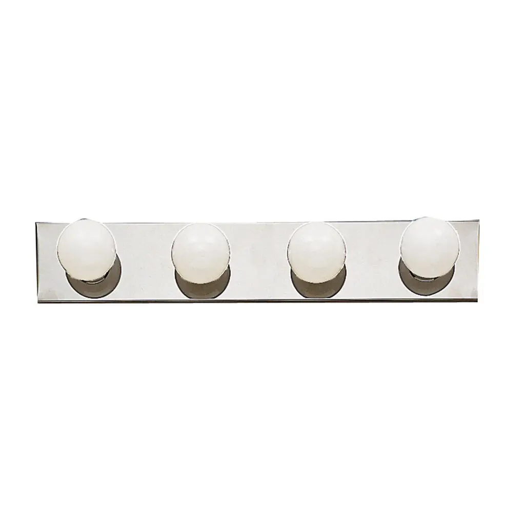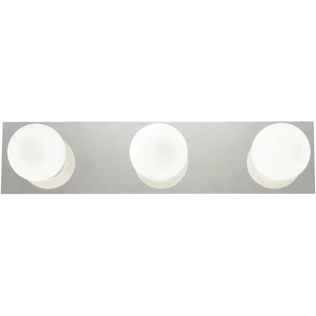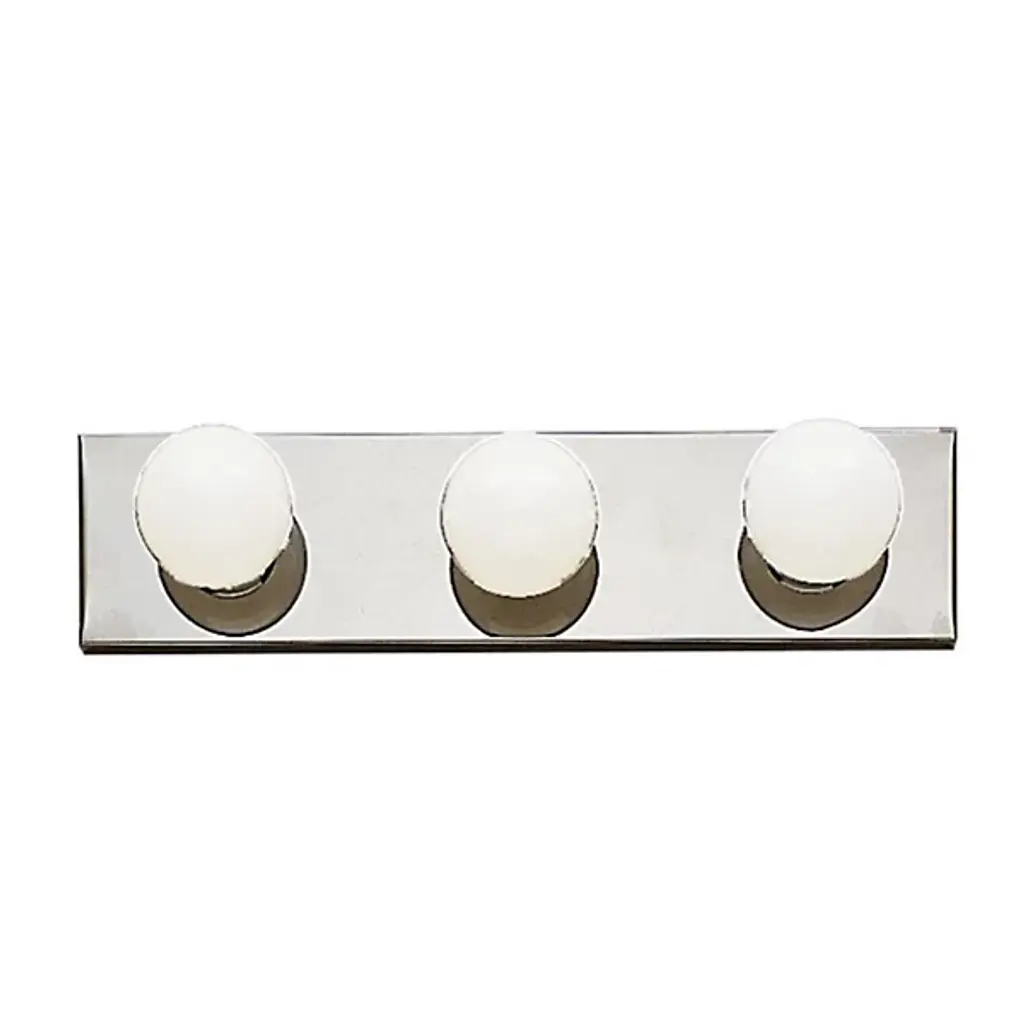 Collection: Belmont, Finish Color: Polished Nickel, Width: 26", Height: 7.5", Depth: 7.75", Lamping Type: Incandescent, Number Of Bulbs: 3, Wattage: 60 Watts, Moisture Rating: Damp Rated,
