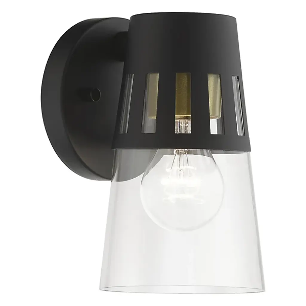 Collection: Bolton, Finish Color: Matte Black, Width: 4.75", Height: 8.25", Depth: 6.5", Lamping Type: Incandescent, Number Of Bulbs: 1, Wattage: 100 Watts, Moisture Rating: Damp Rated,