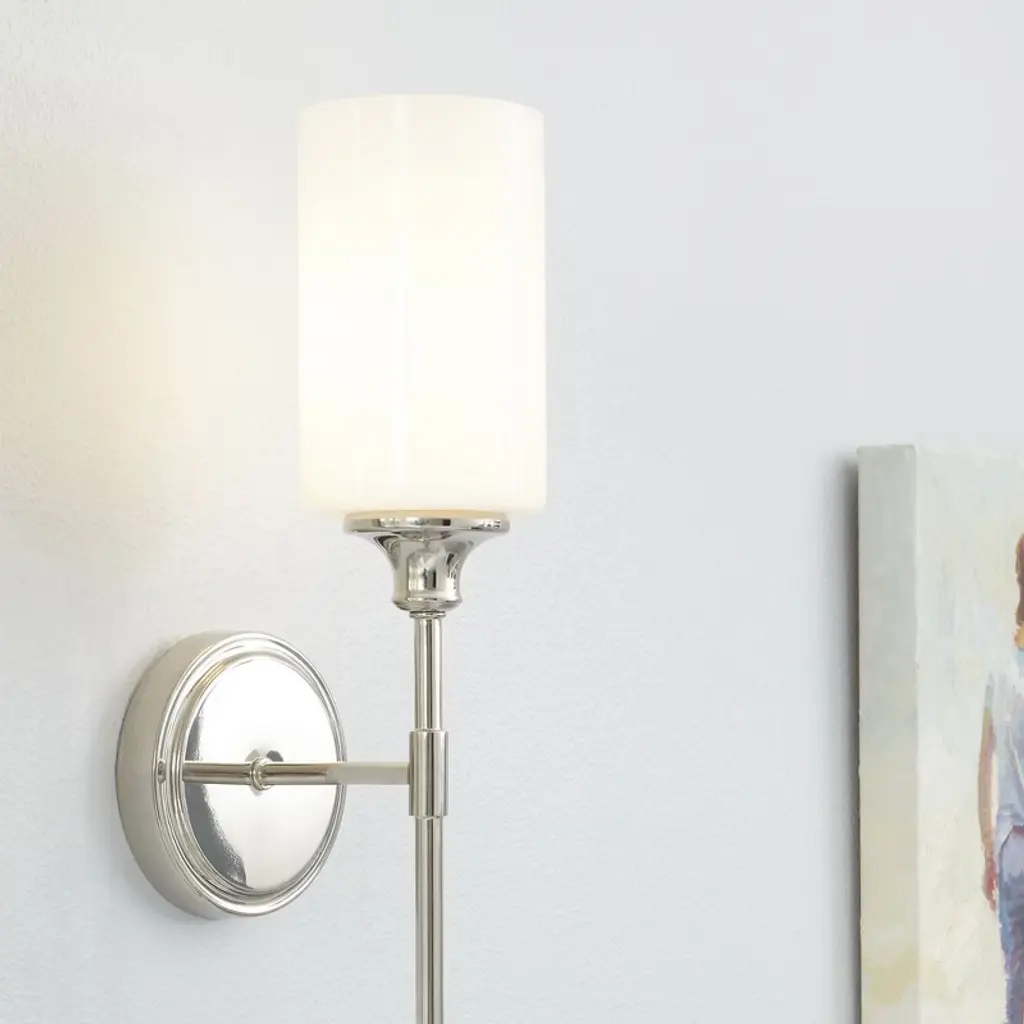 Quorum Lighting Celeste Glass Wall Sconce, 1 Light, Polished Nickel, 4.75w X 19h X 6.25d, Damp Rated