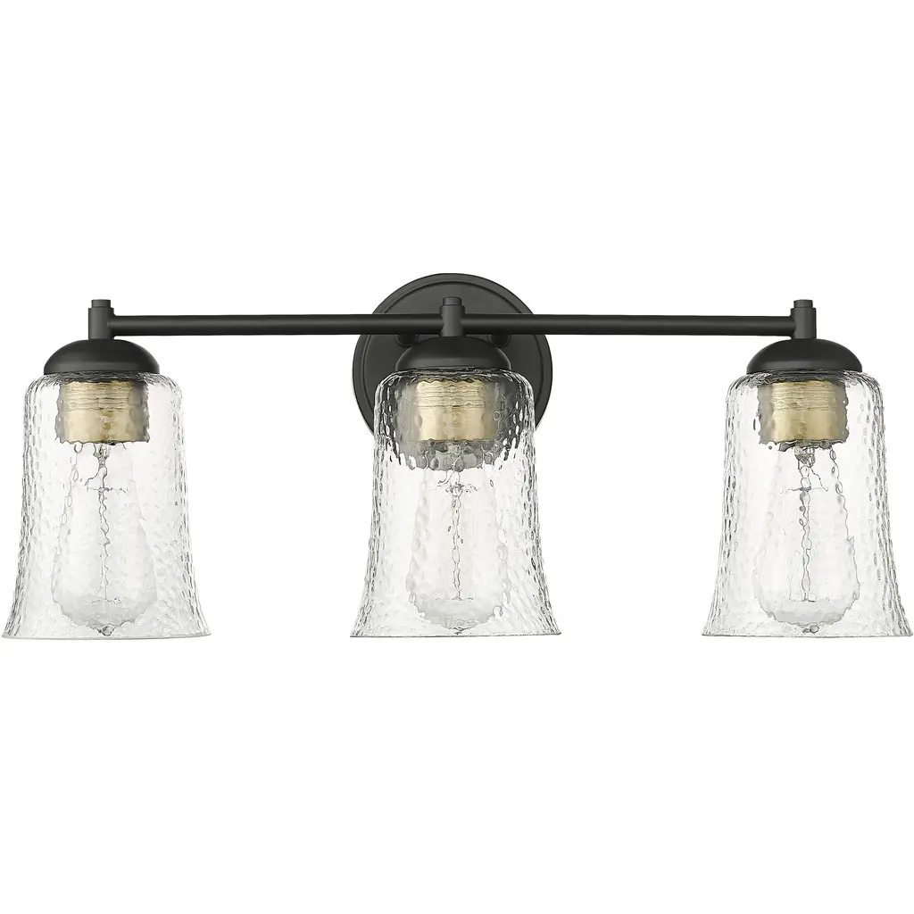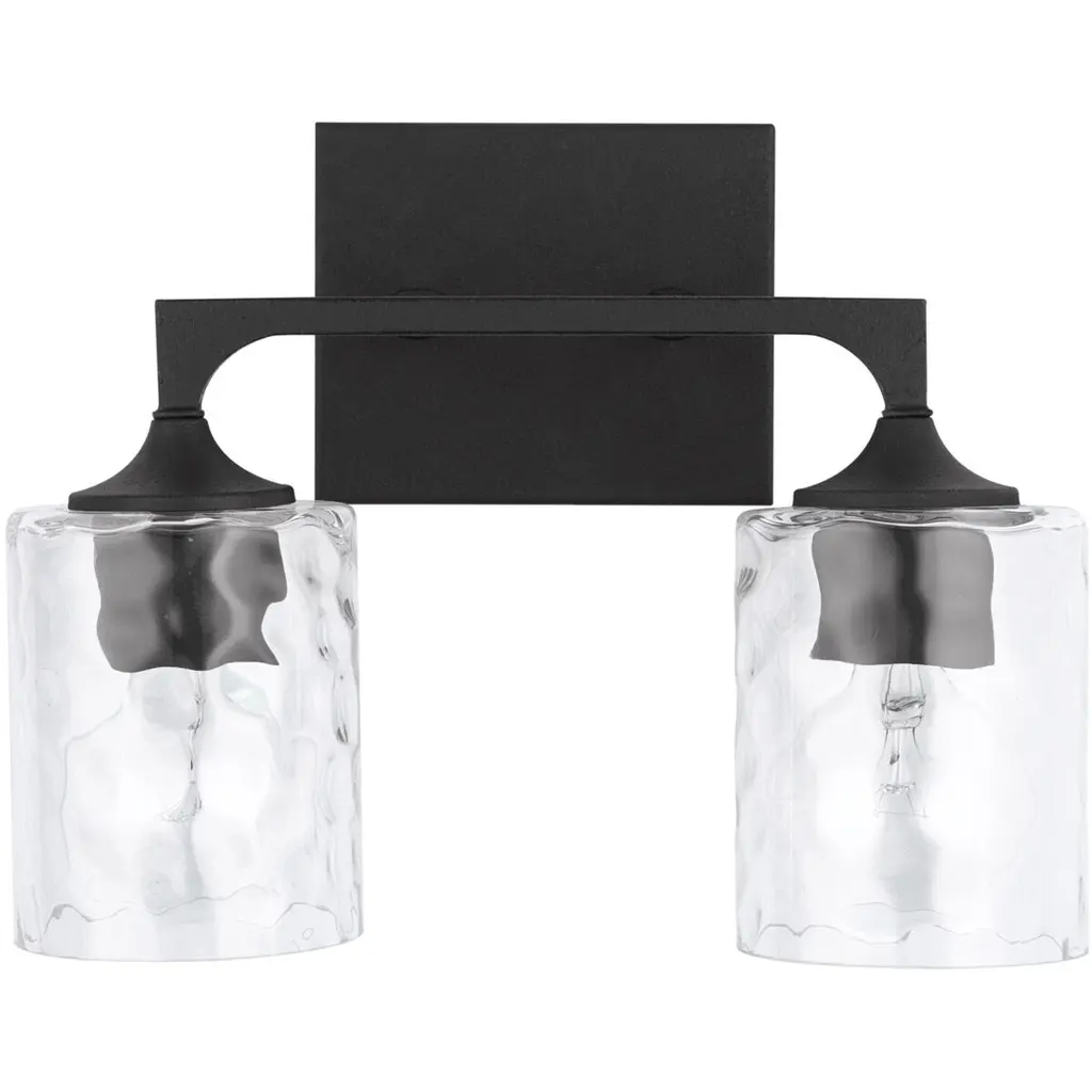 Collection: Eldorado, Finish Color: Matte Black, Width: 15.25", Height: 9.25", Depth: 6.75", Lamping Type: Incandescent, Number Of Bulbs: 2, Wattage: 100 Watts, Moisture Rating: Damp Rated, Desc: Clean lines and subdued details work together to form the intrigue of the El Dorado family of lighting, right angles and classic bobeches create a timeless fa�ade in a familiar matte black finish. Choose from a selection of vanities, wall mounts, and chandeliers, and add traditional charm to your home's aesthetic. Requires 2 - 100 Watt / Medium Base Bulbs / Damp Listed / Clear Hammered Glass Shade. ,