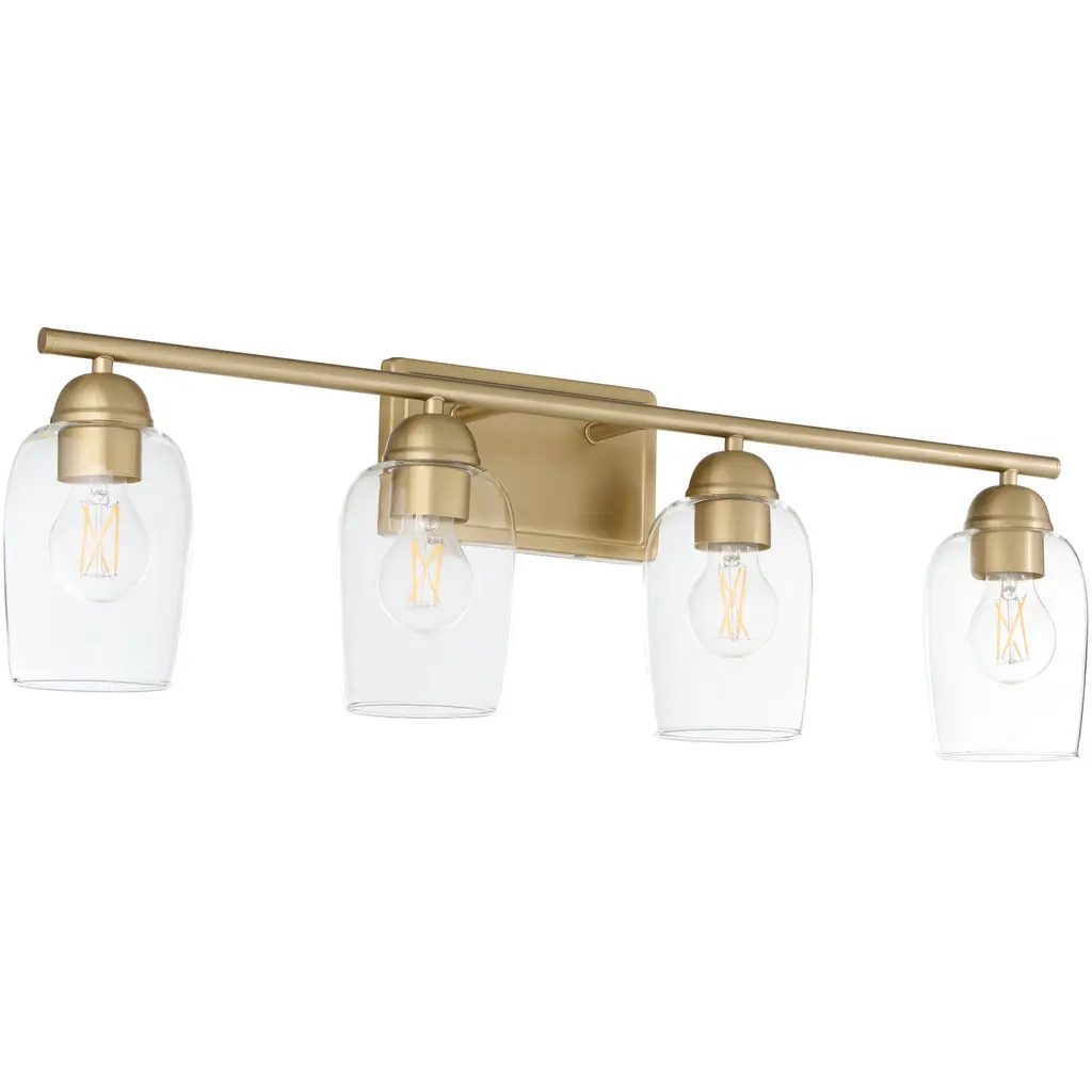 Quorum Lighting Espy 4-light Vanity, Noir/aged Brass, Glass, 32.5 Width, Damp Rated