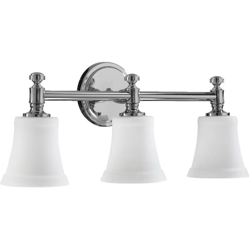 Collection: Rossington, Material: Glass, Finish Color: Chrome, Width: 30", Height: 9", Depth: 6", Number Of Bulbs: 4, Wattage: 100 Watts, Dimmable: No, Moisture Rating: Damp Rated Desc: Shade Included: Yes. , Material: Glass, Finish Color: Chrome, Width: 30", Height: 9", Depth: 6", Number Of Bulbs: 4, Wattage: 100 Watts, Dimmable: No, Moisture Rating: Damp Rated