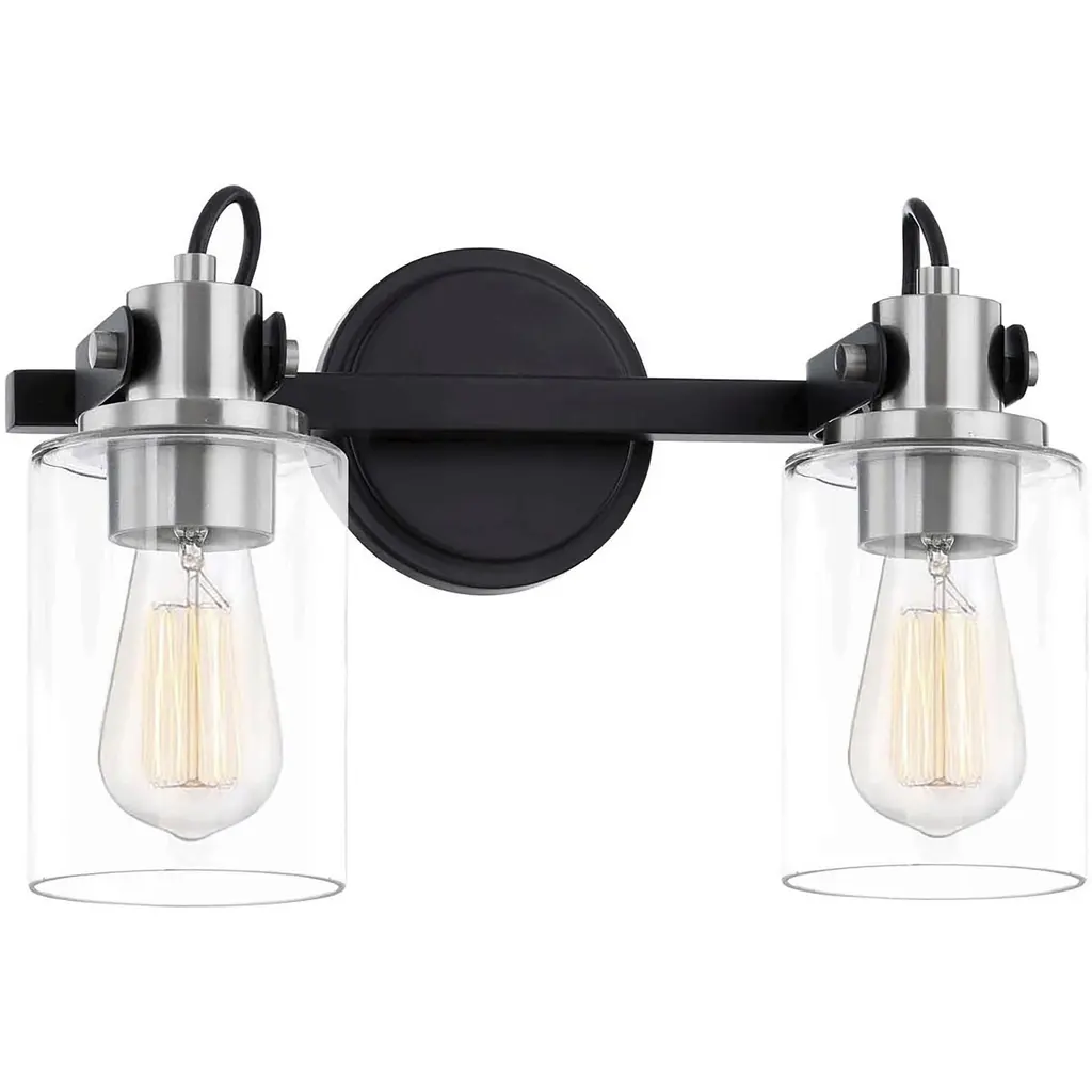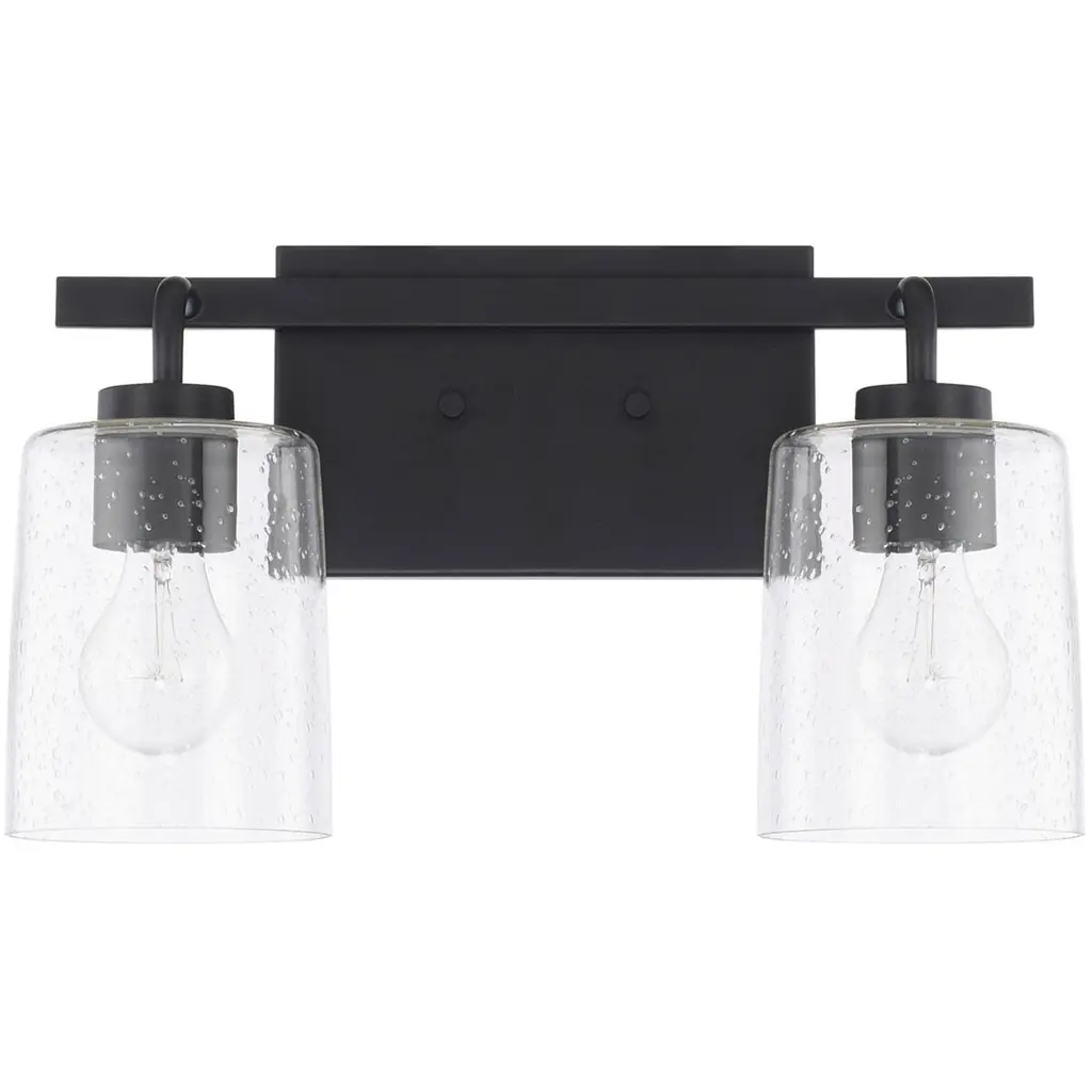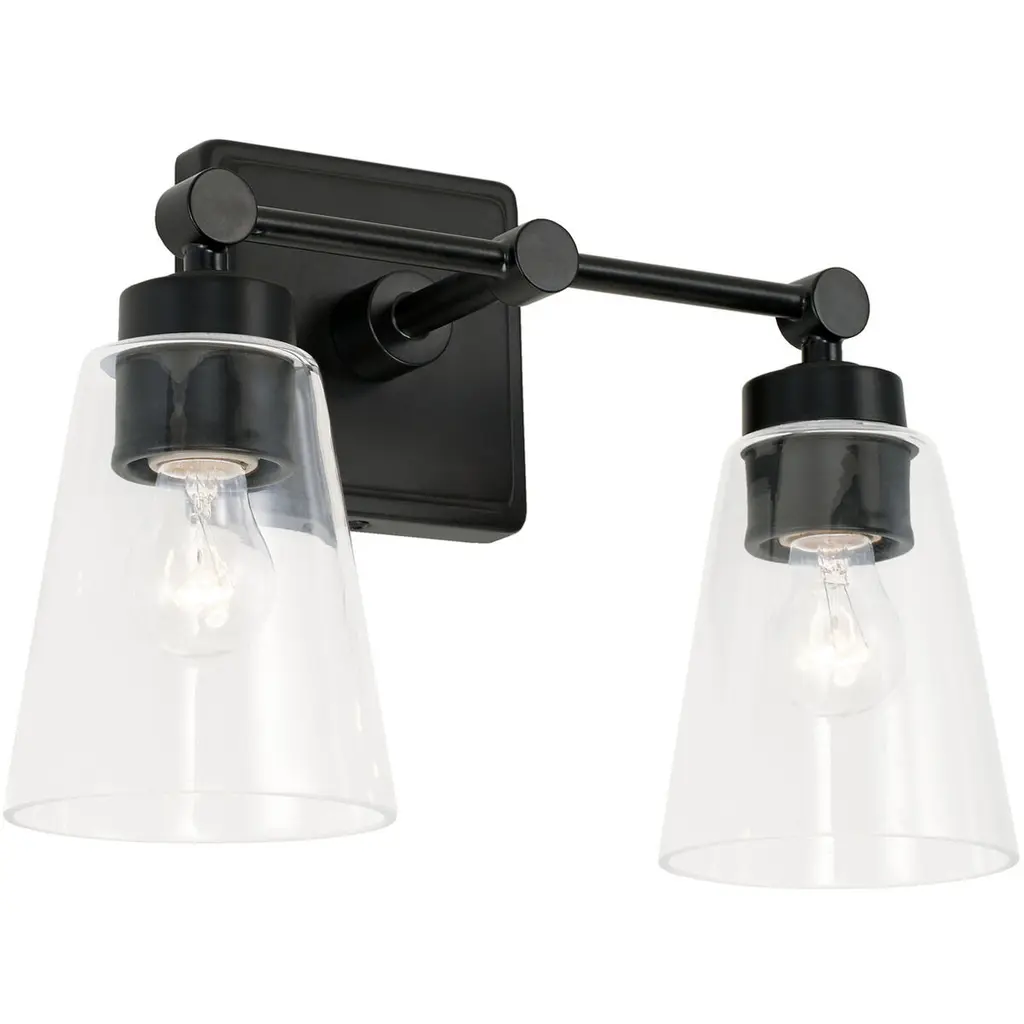 Collection: Tribute, Finish Color: Matte Black, Width: 15", Height: 9.5", Depth: 6.25", Lamping Type: Incandescent, Number Of Bulbs: 2, Wattage: 100 Watts, Moisture Rating: Damp Rated,