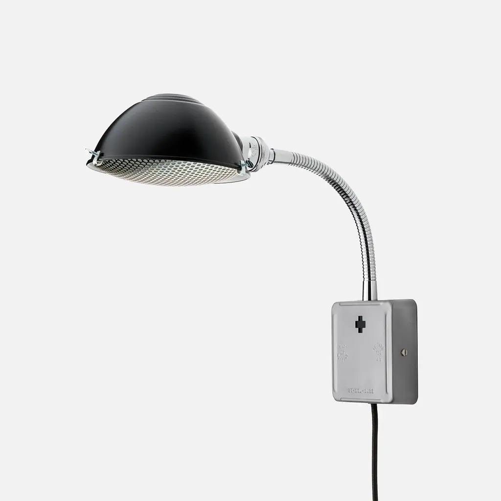 The Radar Plug-In Sconce is a playful nod to the vital history of American product design. Inspired by a light fixture found on an old industrial parts washer, its design reflects utility in every detail. Embossed lettering relays vital electrical information while its adjustable neck provides directional light for the task at hand. This fixture includes a vinyl, cloth-covered cord to allow for illumination anywhere in the home. Also available as a hardwired wall sconce. Assembled in our Portland, Ore. factory using ethically-sourced domestic and global components. A Schoolhouse Original. Learn how to install a plug-in wall sconce and choose perfect wall sconce placement on our blog.