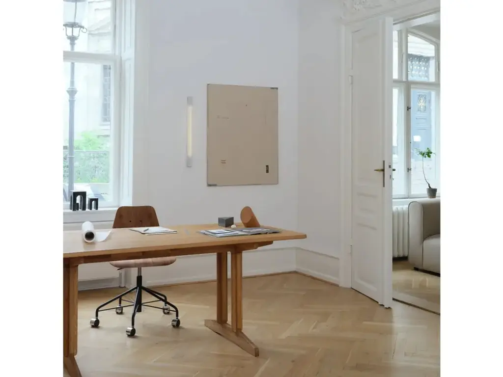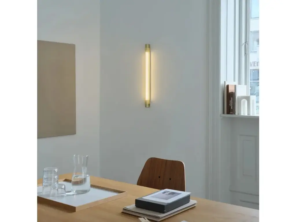 The Radent Hardwired Wall Lamp utilizes a standard LED light for an ultra-slim, linear design.
