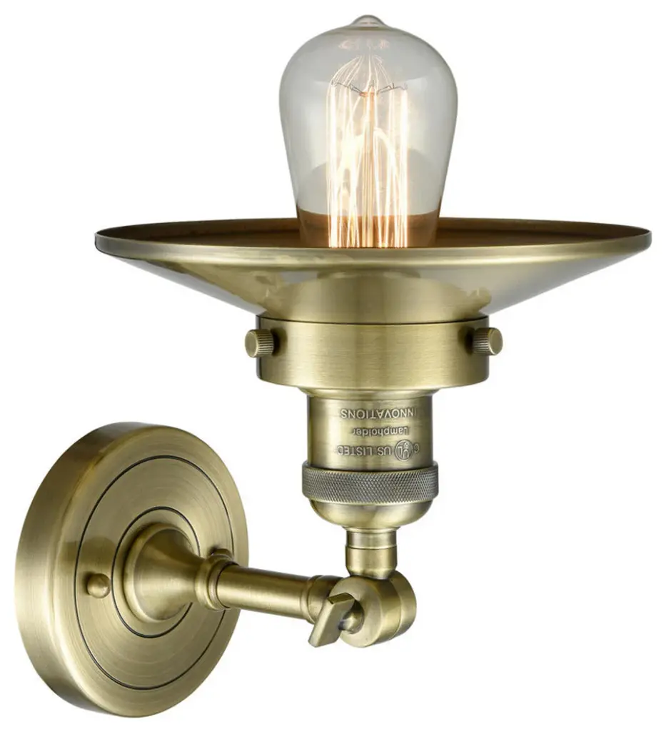 Railroad 1-Light Sconce, Antique Brass, Antique Brass