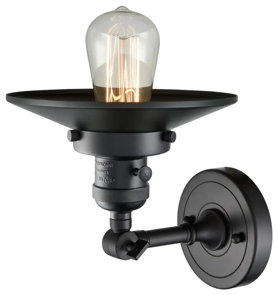 Railroad 1-Light Sconce, Matte Black, Shade: Matte Black
